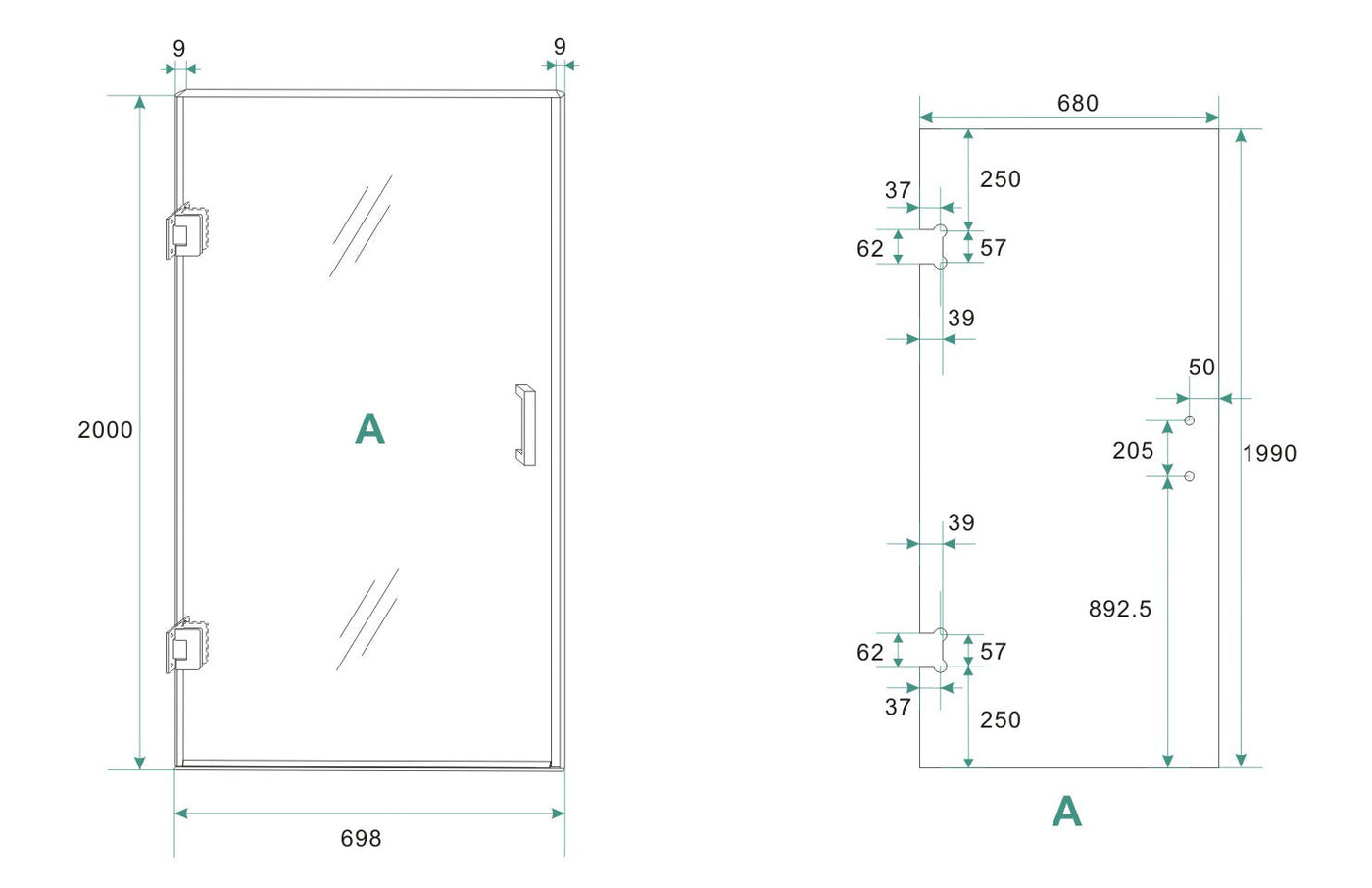 Less nisdeur 700 x 2000 x 8 mm nano helder glas/geborsteld staal