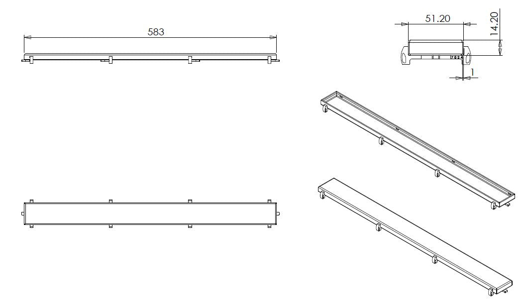 RVS tegelrooster tbv douchegoot 60x7