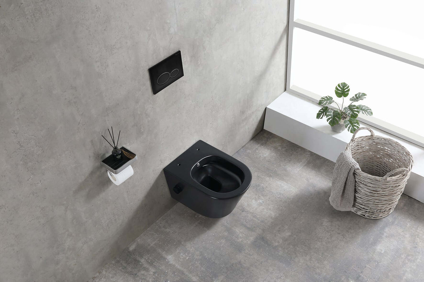 Vesta wandcloset rimless met bidetkraan warm en koud water mat zwart