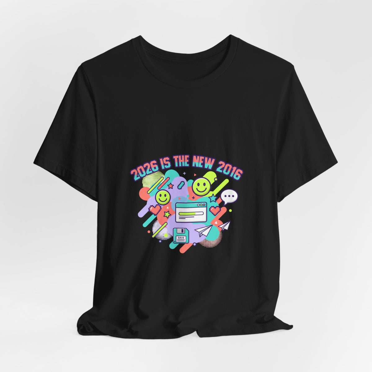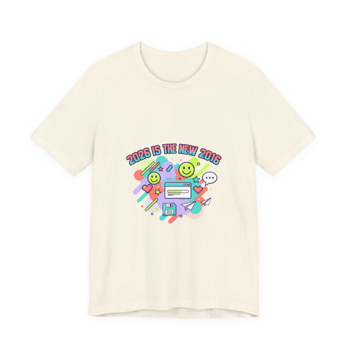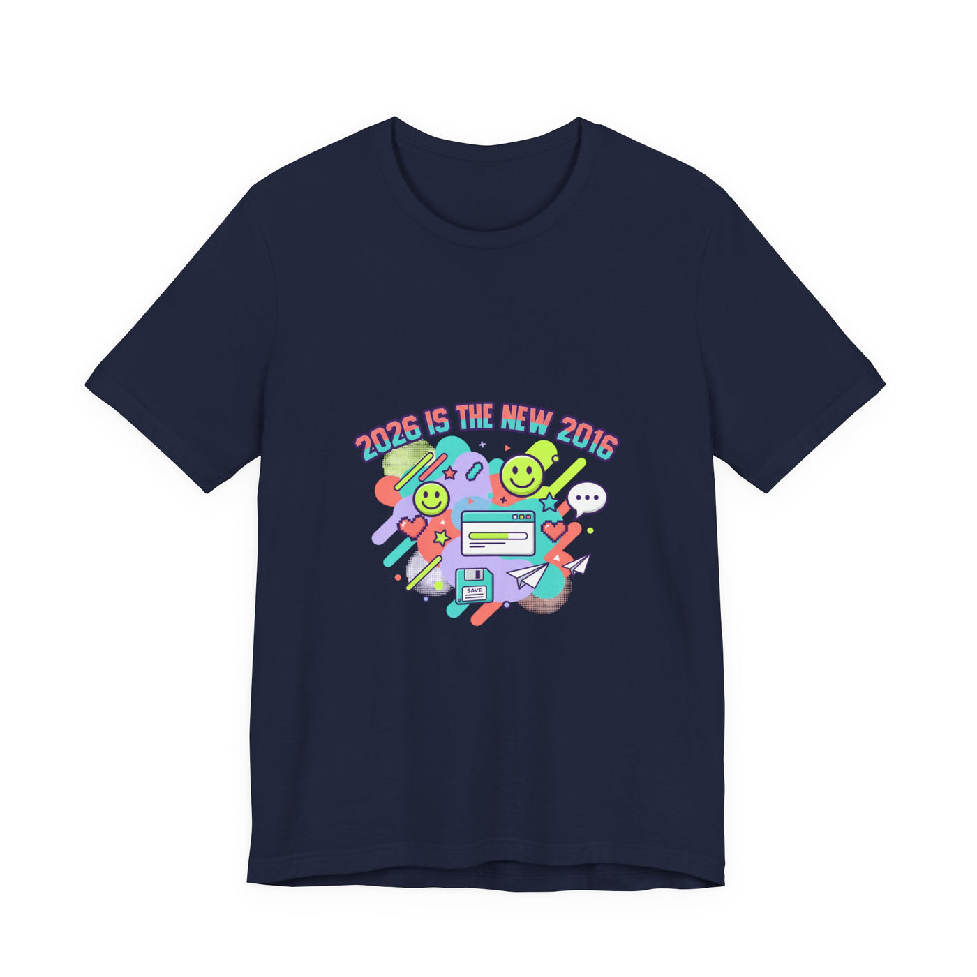 A lightweight, retro-internet tee that channels mid‑2010s online nostalgia with neon‑pastel graphics and pixel‑adjacent typography. The front artwork mixes lo‑fi UI motifs—smiley faces, chat bubbles, and a chunky media player—rendered in soft gradients and playful geometric shapes to evoke early social feeds and meme culture. Wearers who remember scrolling and sharing in the 2010s will find the tongue‑in‑cheek line and vintage internet aesthetic an easy way to nod to that era while keeping a casual, everyday look.
