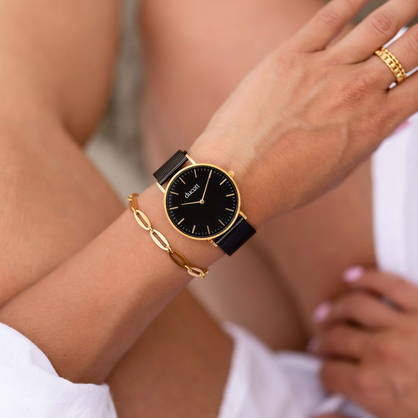 The DUCETT Noira Mesh is a ladies watch with a stainless-steel strap. The watch has an elegant gold case and...