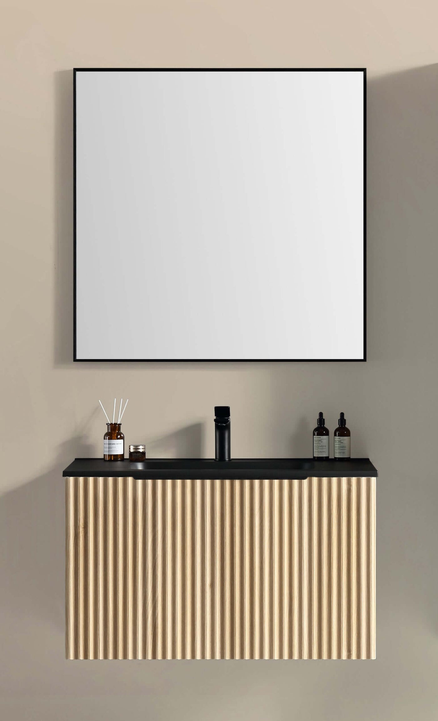 Ribbella badmeubel compleet 100 cm naturel eik/mat zwart