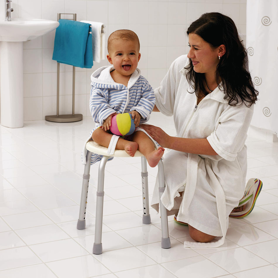Met dit badkamerkrukje kan er veilig en ontspannen gebruik worden gemaakt van het bad of de douche. De badkamerkruk is verstelbaar en voorzien van brede antislip pootjes die zorgen dat de kruk stevig blijft staan op vochtige en natte vloeren. De kruk is licht van gewicht en heeft een draagvermogen van maximaal 150 kg.