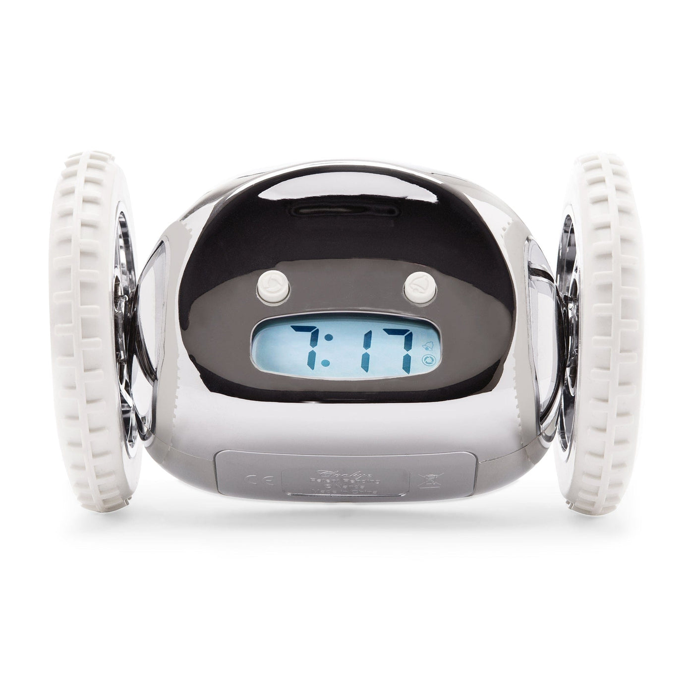 - Product: Clocky - Alarm Clock on Wheels - Chrome