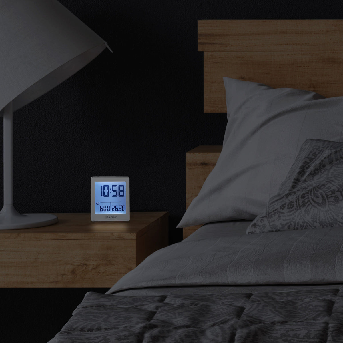 Introducing NeXtime's "Wake Up" Digital Table Alarm Clock – a modern 7.7x8.9x3cm timekeeping marvel. Featuring Radio Controlled Clock (RCC) precision, it not only wakes you up on time but also displays the temperature. In crisp white or black ABS, the "Wake Up" combines functionality with contemporary style, ensuring a smart and timely start to your day.