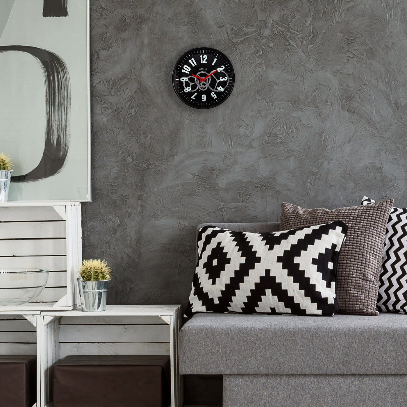 The NeXtime "Modern Gear Clock" (36cm) gives a twist on the classic design through the combination of modern red hands, a clear index and real moving gears. Don't like the movement? No problem, the moving gears are separately controlled and can be easily switched off. This wall clock is available in black or white and works on 3x AA battery (not included).