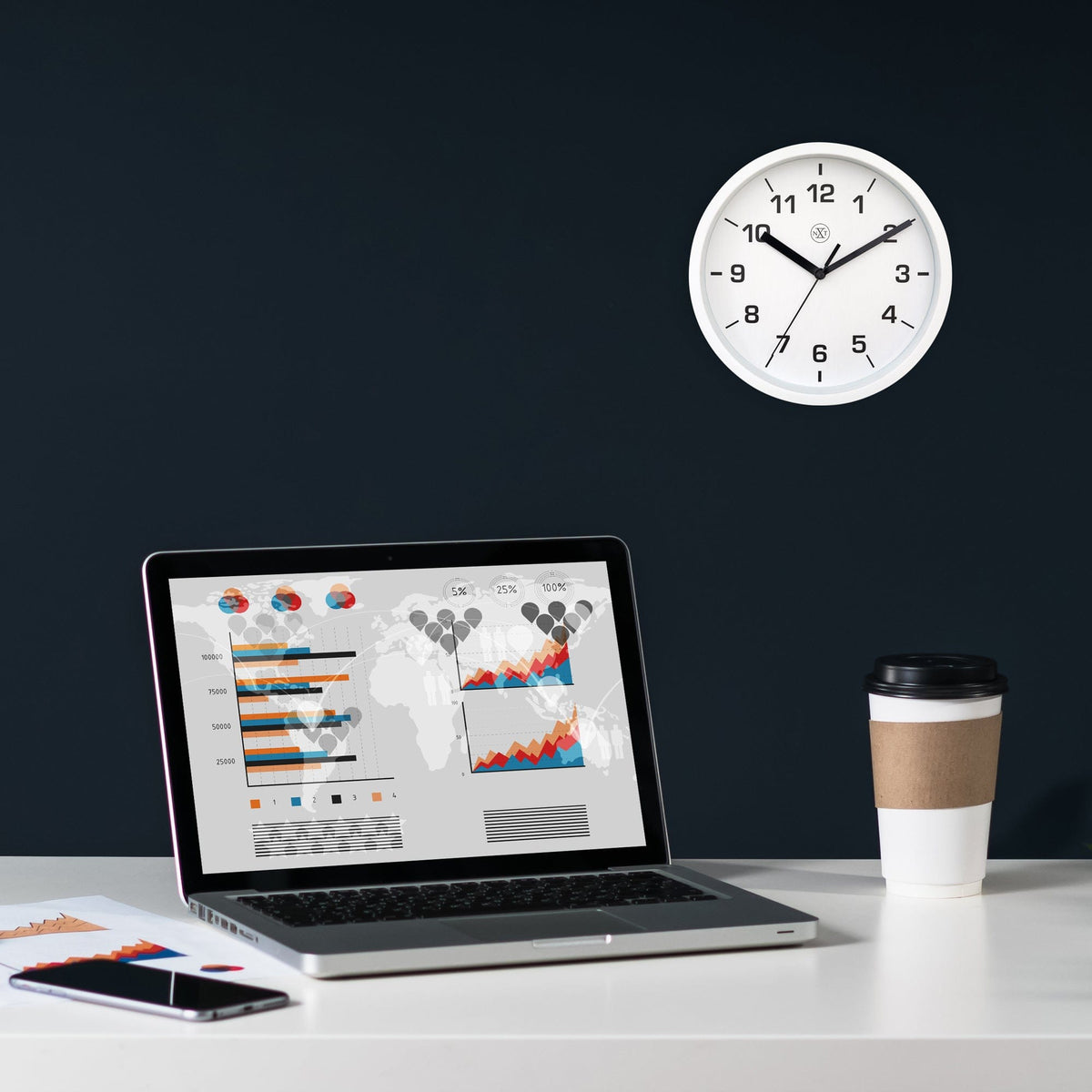 The NeXtime Easy Small silent wall clock (20cm) combines minimalist sophistication with functionality. It is a simple design with black Arabic numbers on a white dial and a slim white case. This clock uses 1 x AA battery (not included).