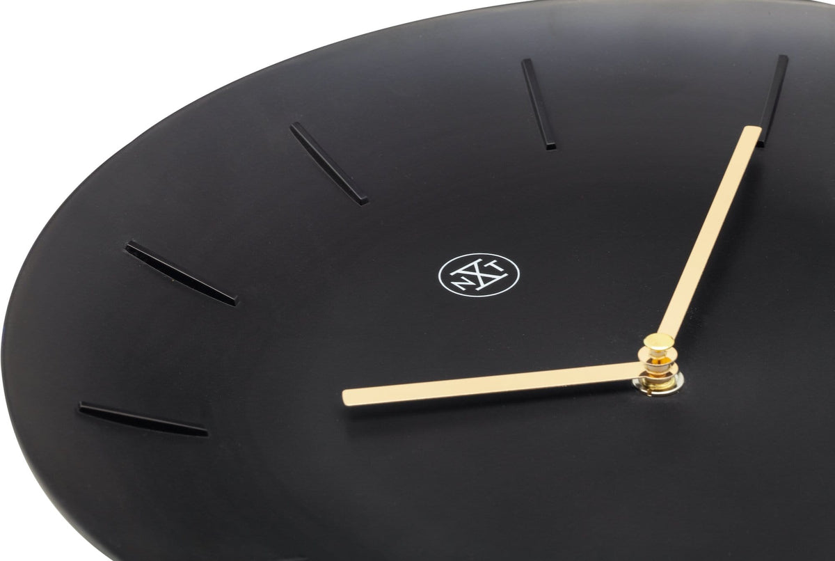 The nXt "Bowl" is a round plastic clock (Ø30 cm). The bowl-shaped dial with the golden hands and sweeping pendulum...