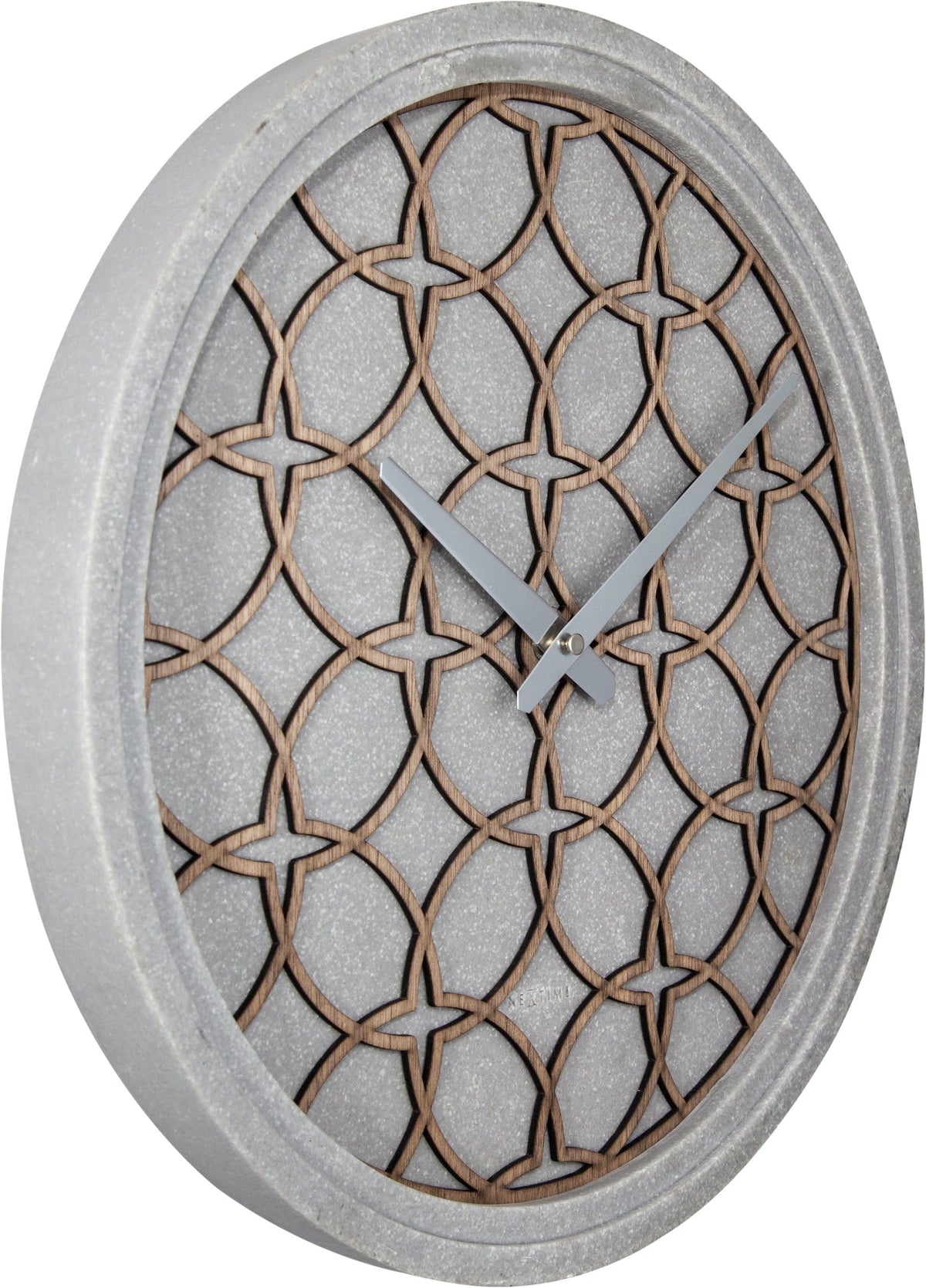 The NeXtime "Concreto Love" is a wall clock designed by Jette Scheib. The combination of the materials wood and poly resin creates an interesting and eye-catching design. A traditional oriental ornament made of wood decorates the clock face. This modern clocks will add a nice oriental touch to a modern home. This clock is silent and runs on 1 AA battery (not included).