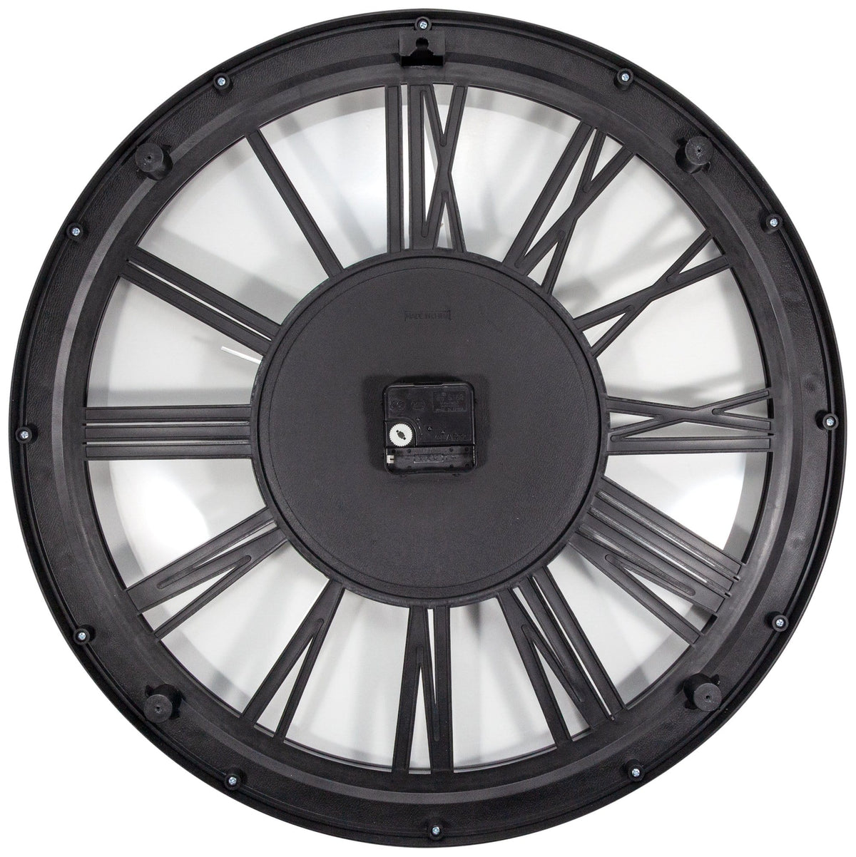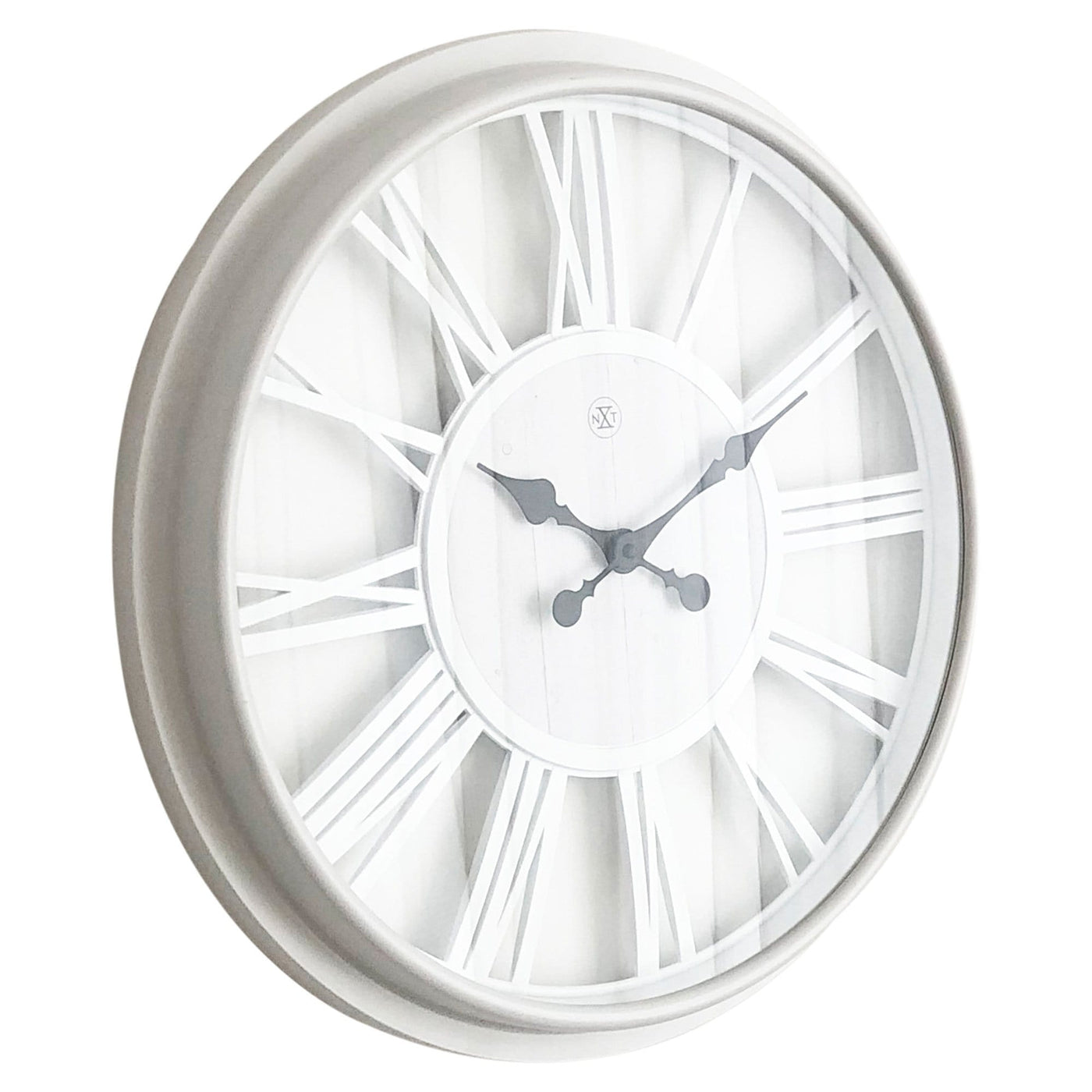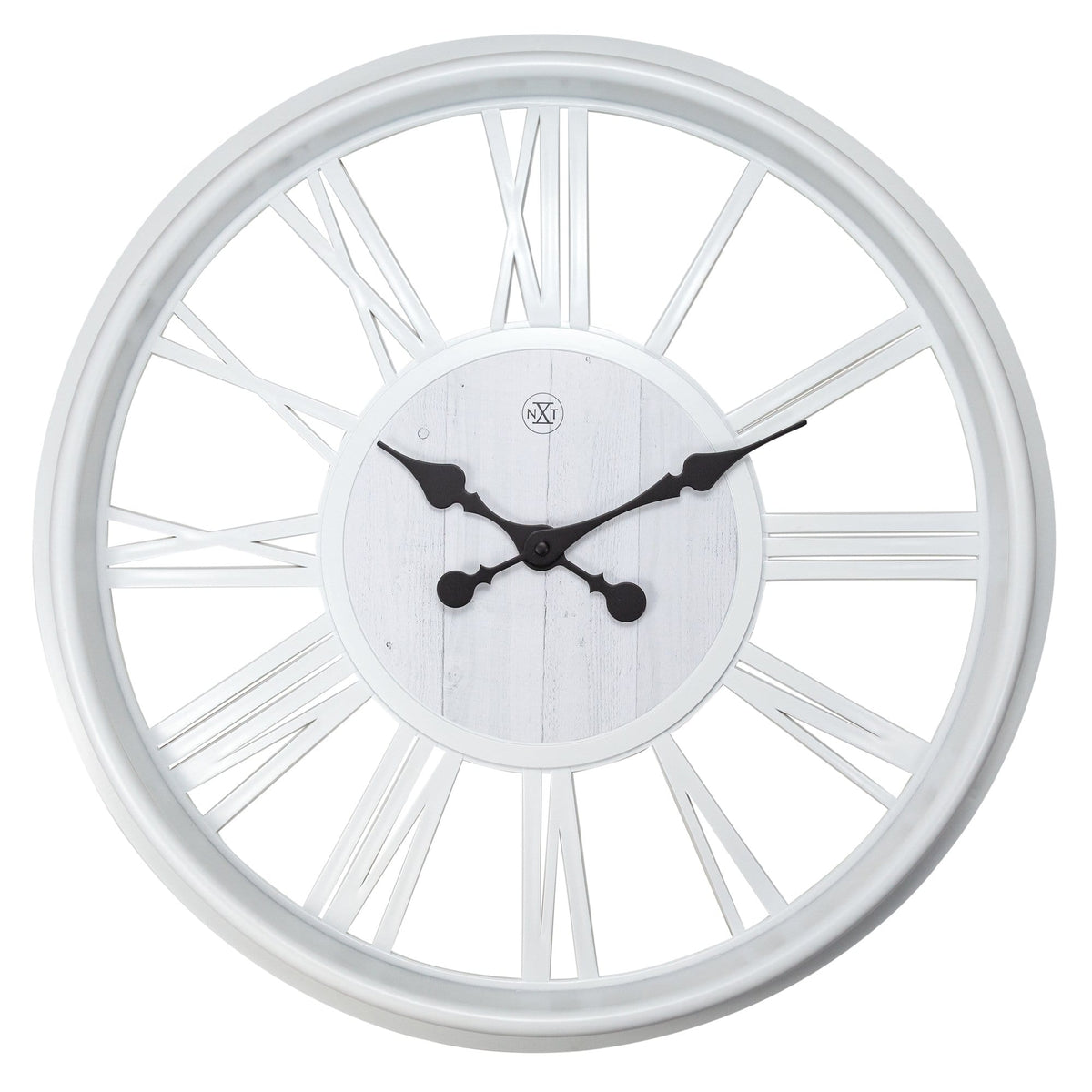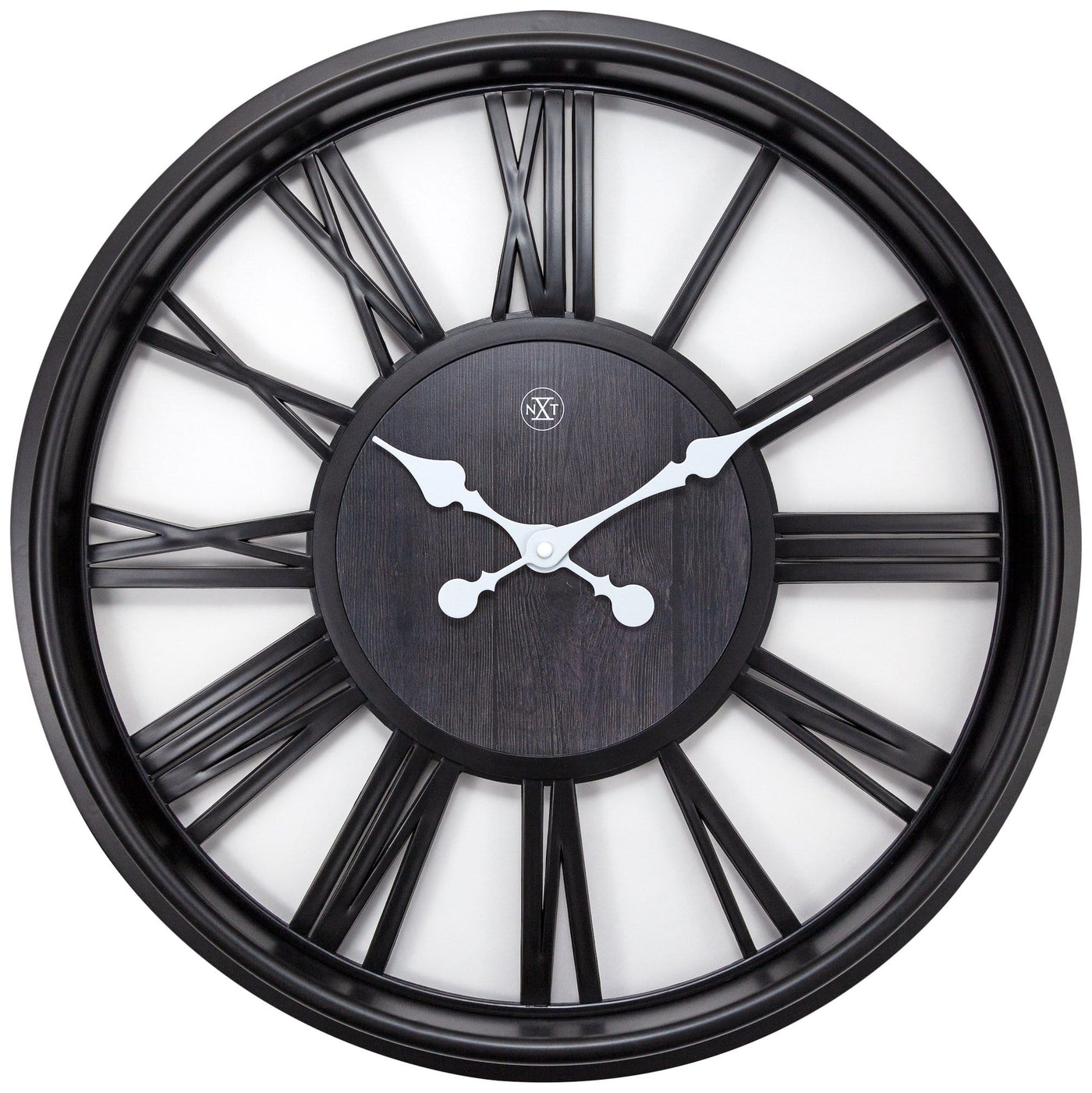 The nXt "Quebec" is a large (Ø51cm) round wall clock. The clock is made of plastic combined with glass. The roman index, the touch of wood and romantic style hands creates a lovely vintage look. This clock works on 1 AA battery (not included).