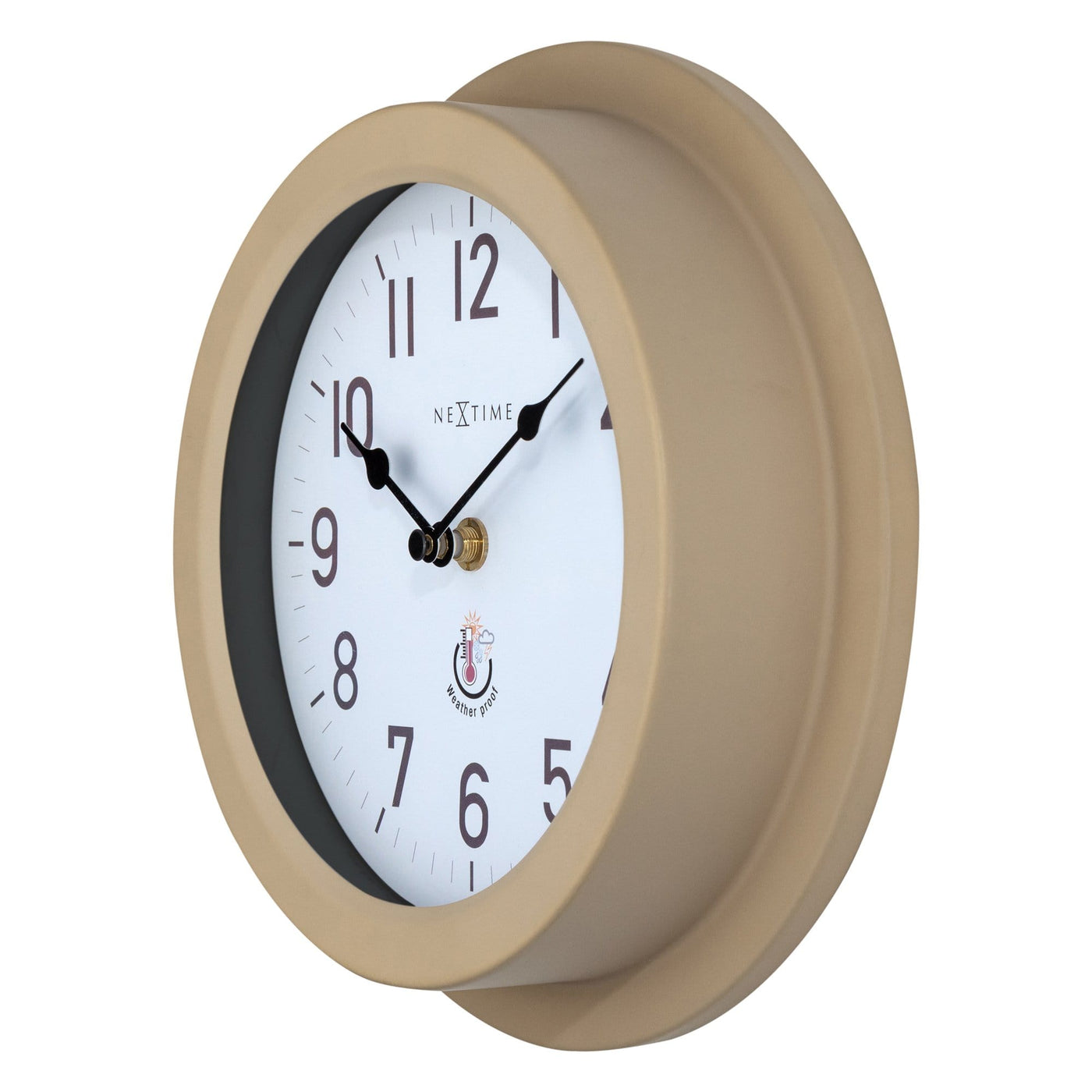 The NeXtime "Poppy" is a metal garden clock that can be used outside. The use of extra rubber rings to protect the water from reaching the delicate parts of the clock is making this clock special and weather proof. The clock is robust and from metal and with Ø 22cm it will fit everywhere. The dial is white and has big numbers for the hours and stripes for the minutes. Because of the black hands, the clock is easy to read. The clock runs on 1 AA battery (not included).
