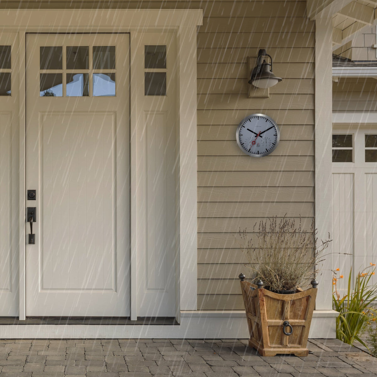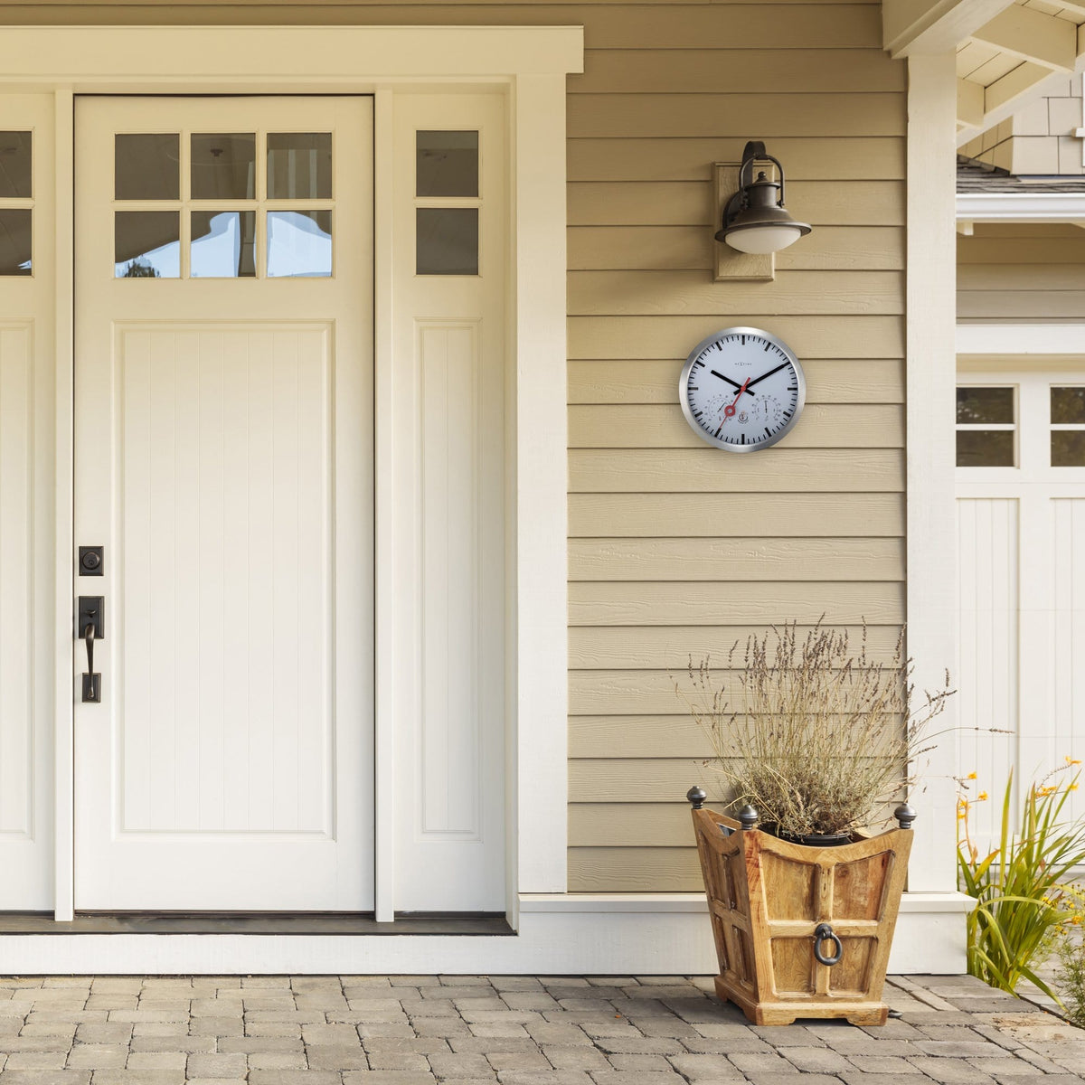 The NeXtime "Clematis" is a very complete aluminium garden clock that will also show the temperature and the humidity. Especially made for outside! The use of extra rubber rings to protect the water from reaching the delicate parts of the clock and the special coating on the aluminium is making this clock special and weather proof. If you want to be up to date in your garden, this is the clock for you! Time, temperature and humidity in 1 device. The clock is robust and from aluminium and with Ø 35cm it will fit everywhere. The dial is white and has a big index for the hour indication. Because of the black hands and the big red second hand, the clock and the meters are easy to read. The clock runs on 1 AA battery (not included).