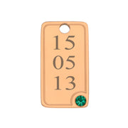 A rectangular pendant on which a date is engraved with a matching birth stone. Very nice to give as a gift for a birth or on a special date such as a wedding day with the corresponding stone of the month!