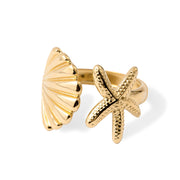 Bring the ocean to your fingertips with this stunning adjustable ring, featuring a delicately crafted seashell and starfish. Inspired by seaside treasures, this ring captures the beauty and calm of coastal days.