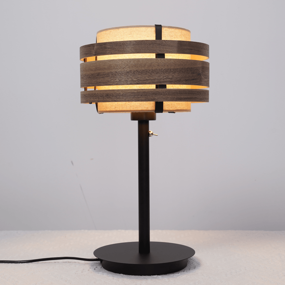 Lamp Shade - Wood (dark walnut veneer)-Fabric - 25 cm - "Beam" - Ø 25