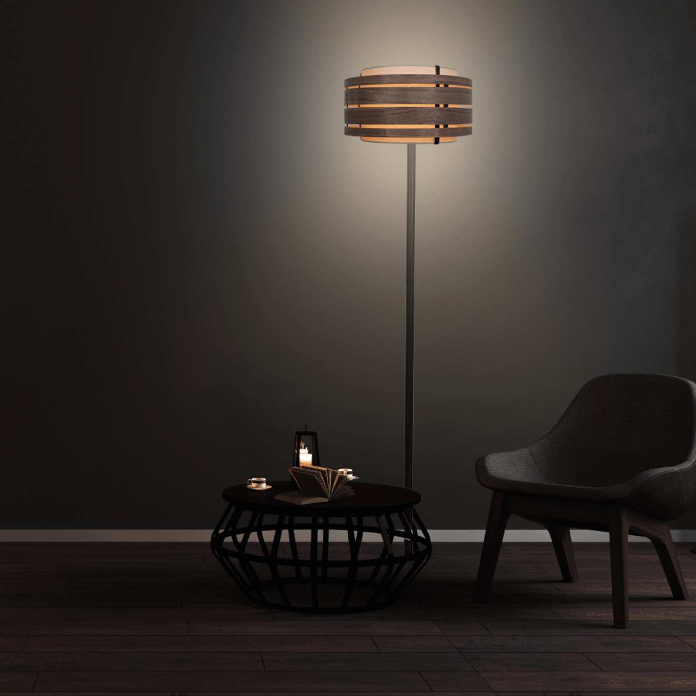 Nextime's Beam lamp shade 40 cm features a sleek, minimalist silhouette that blends functionality, elegance, and a touch of natural beauty. Crafted using a combination of plywood and walnut veneer, adding depth and contrast with the soft light grey fabric that creates a gentle inviting glow.