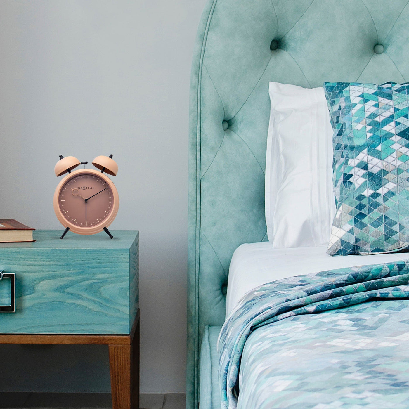 NeXtime's Golden Hour table and alarm clock is inspired by the classic double bell form. It offers a range of chic pastel colours accentuated by the striking copper and black colour hands. It is silent and features a night light to make it easy to see the time in the dark. What is the golden hour to wake?