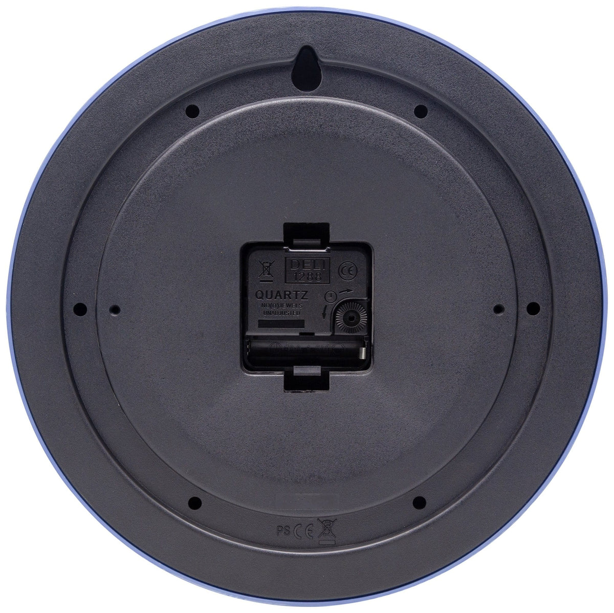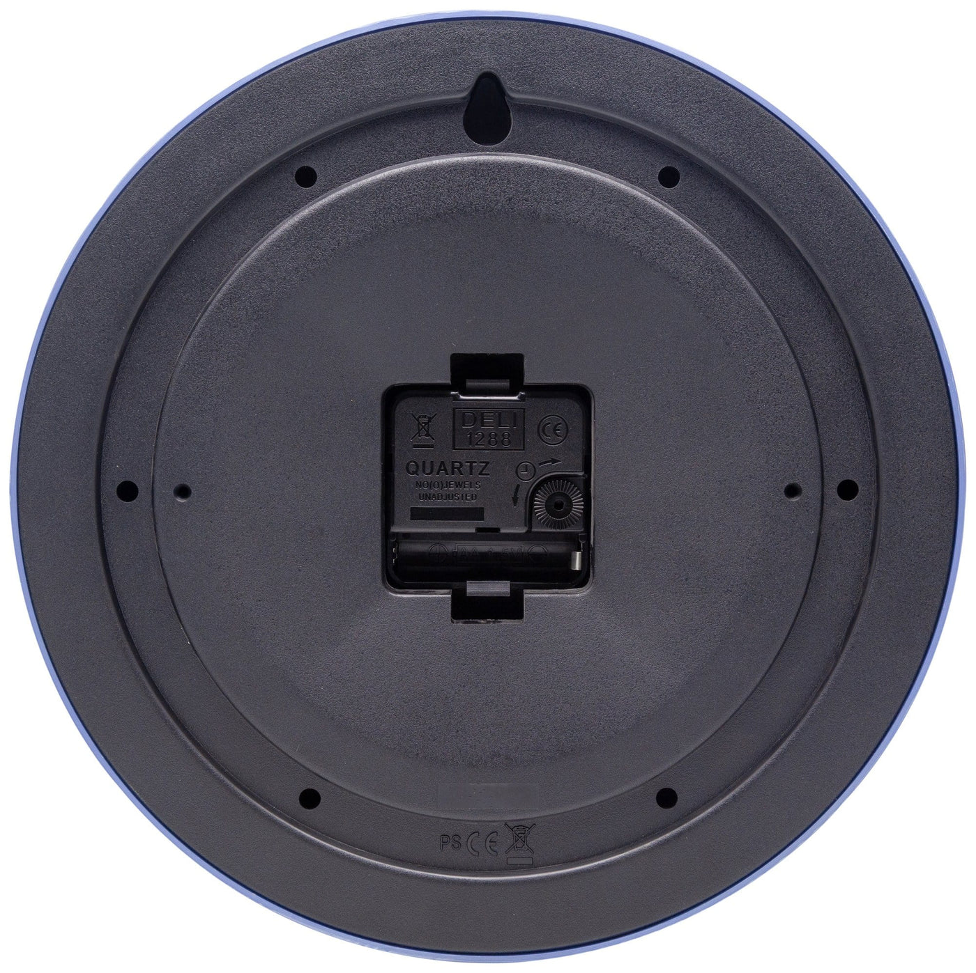 The nXt "Apollo" is a round wall clock (26cm). The plastic clock has a blue case and a dial with a starry sky print and clear white index numbers. The clock has colourful elements and fun hands with a blue minute hand and a green hour hand. This clock is silent and works on 1 AA battery (not included).