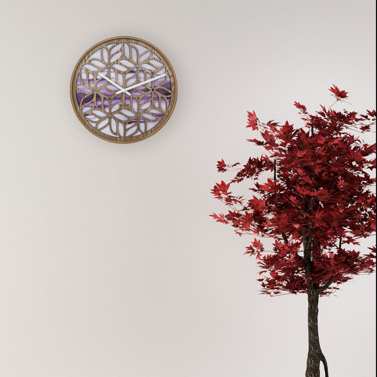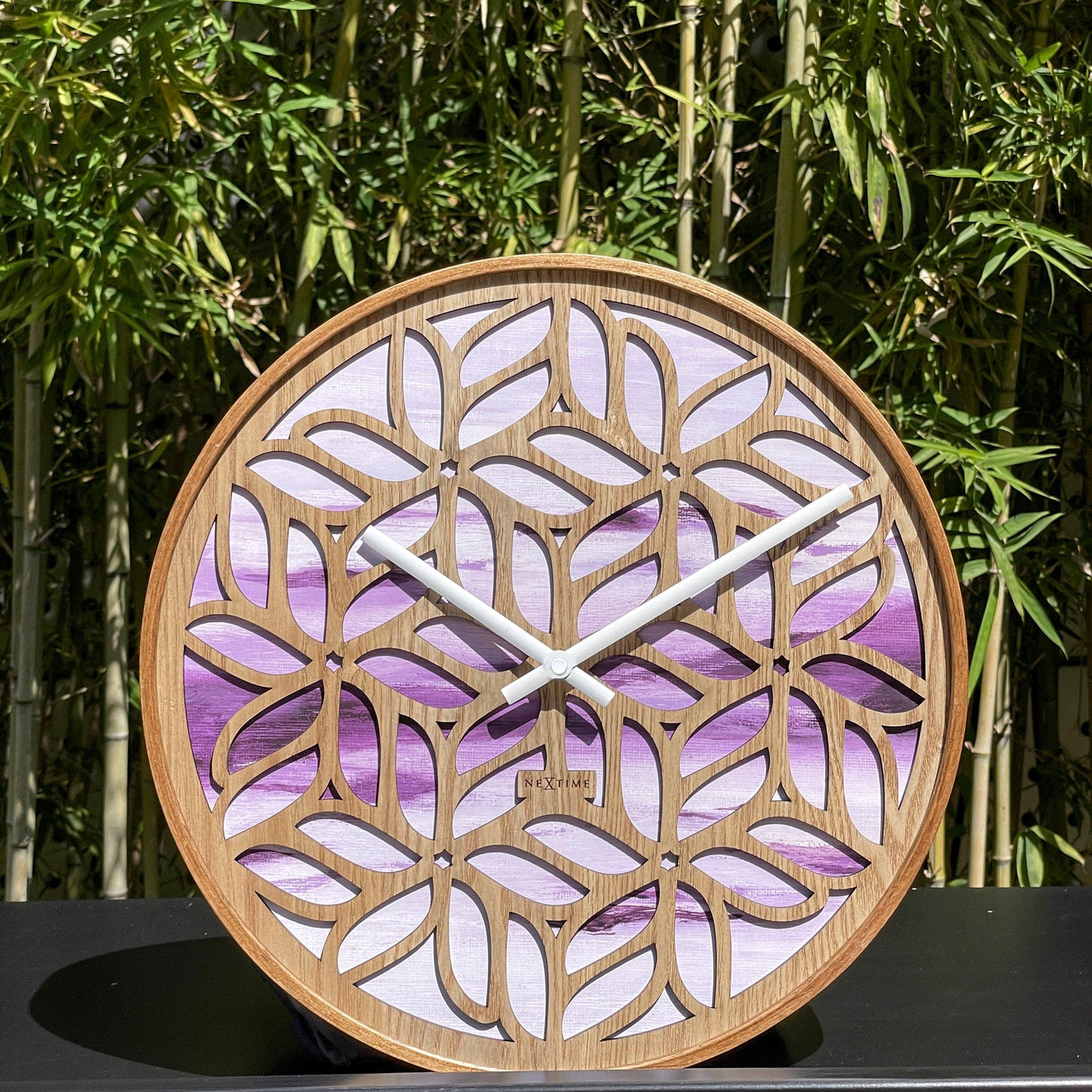 The NeXtime Yogi silent wall clock (40cm) features natural wood cut in a harmonious floral pattern on top of an airy water colour background in a calming purple. Designed by Jett Scheib, it crates a connection to nature and will definitely bring elegance and peace to the room. This clock uses 1 x AA battery (not included).