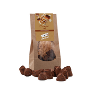 Our chocolate truffles are packed in 100% biodegradable bags with plant based plastic. After you finished these delicious chocolate truffles, you can dispose the packaging in the compost or green trash. Our label can be thrown away for paper recycling.