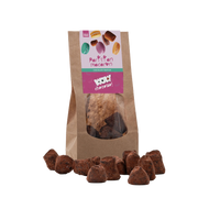 Our chocolate truffles are packed in 100% biodegradable bags with plant based plastic. After you finished these delicious chocolate truffles, you can dispose the packaging in the compost or green trash. Our label can be thrown away for paper recycling.