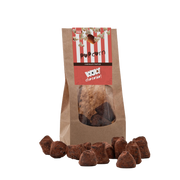 Our chocolate truffles are packed in 100% biodegradable bags with plant based plastic. After you finished these delicious chocolate truffles, you can dispose the packaging in the compost or green trash. Our label can be thrown away for paper recycling.