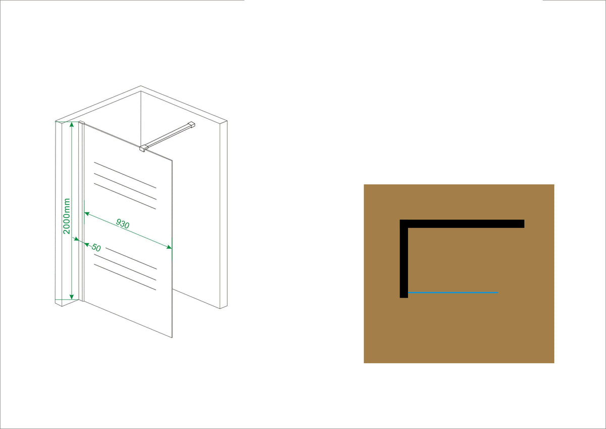 - Houd er rekening mee dat de afmetingen van de inloopdouche 2 tot 3 cm kleiner zijn dan aangegeven, aangezien deze ook op een douchebak kan worden genstalleerd.