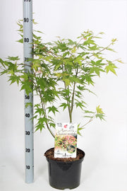 Hoogte en groeiwijze: Deze Japanse esdoorn groeit als een compacte, breed opgaande struik tot ca. 150–200 cm. De groei is langzaam en sierlijk, met fijne vertakkingen en een rustige vorm.