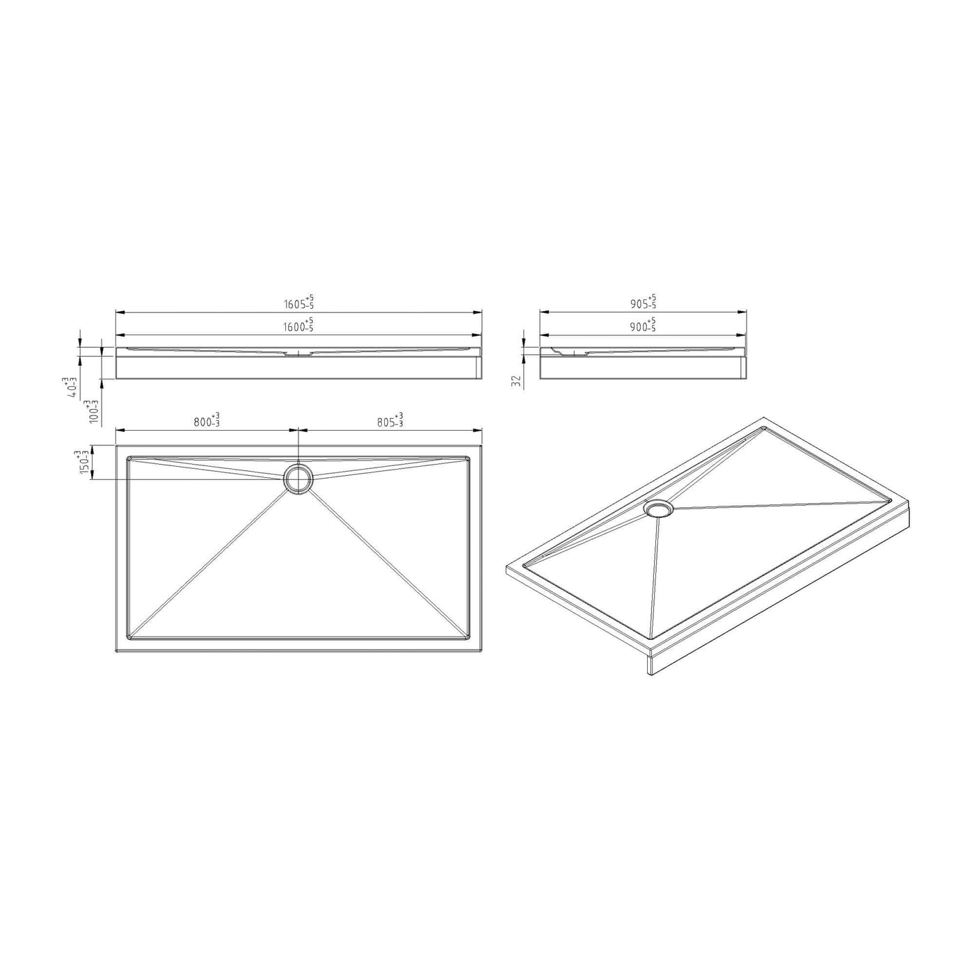 Acryl Douchebak Wiesbaden 160X90X4Cm in Witte Rechthoek met 90Mm Afvoer Klaar voor een innovatie in de badkamer? Kies een douchebak....