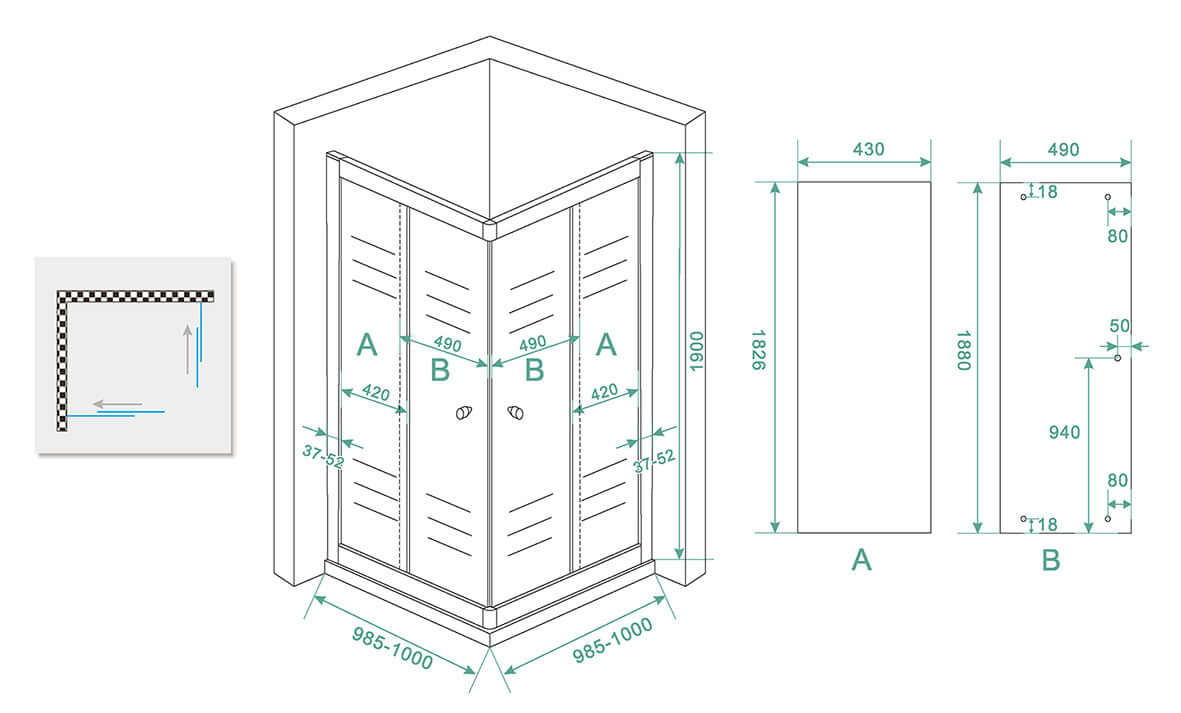 Actie Hoekinstap Douchecabine Wiesbaden 100x100x190 cm 5 mm Helder Glas