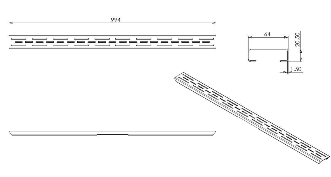 Specificaties Los standaard rooster Wiesbaden tbv 3e gen douchegoot 100cm Mat Zwart