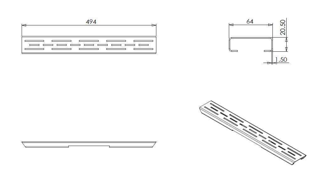 Specificaties Los standaard rooster Wiesbaden tbv 3e gen douchegoot 50cm Mat Zwart