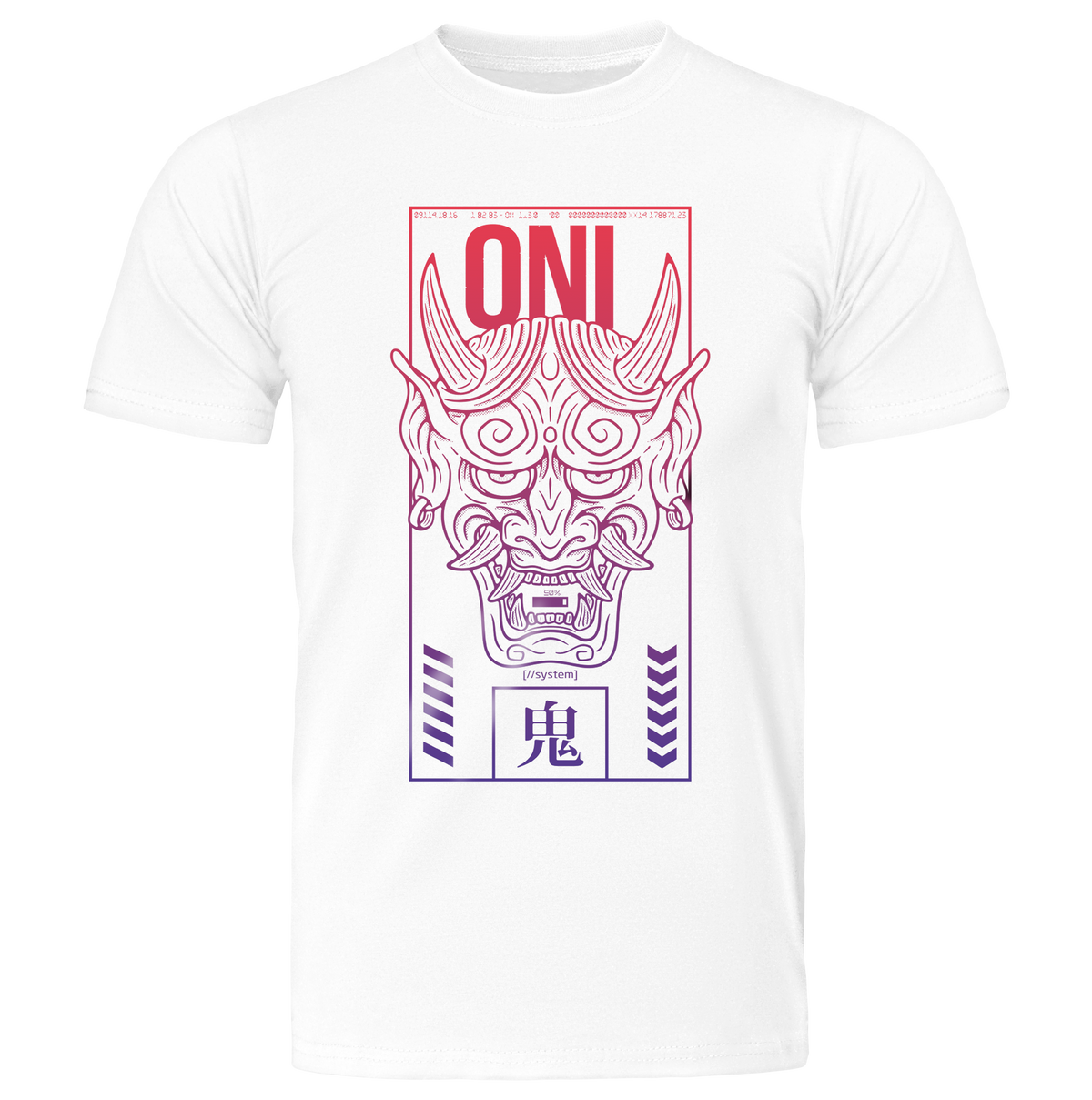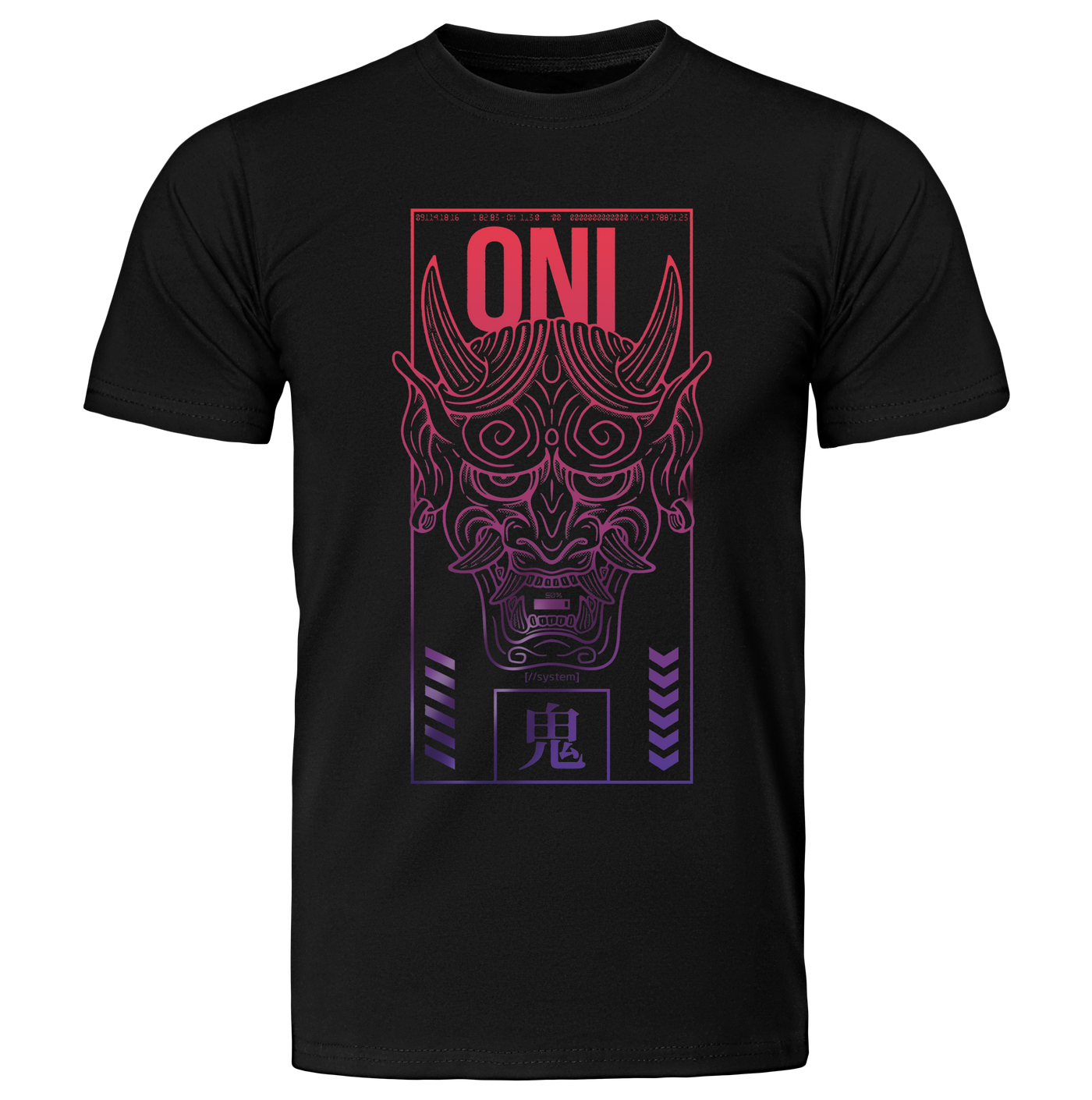 Digital demons are commonplace in 2049. Keep your friends close and your enemies closer with AKUMA. This design is also available in a hoodie version.