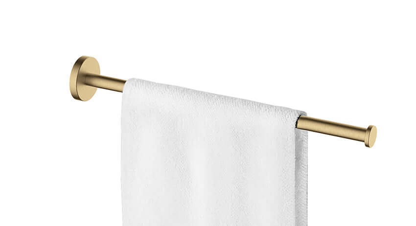 Met dit eigentijdse Wiesbaden Alonzo handdoekrek in de kleur geborsteld messing heb je je handdoek altijd binnen handbereik. Het rek heeft een vaste arm waardoor je handdoek ook nog eens sneller droogt. Bovendien is het rek gemaakt van hoogwaardige materialen en met de meegeleverde schroeven en Fischer pluggen bevestig je het rek eenvoudig aan de wand. Combineer het handdoekrek met andere accessoires uit de Alonzo serie en maak één geheel van je badkamer of toilet.