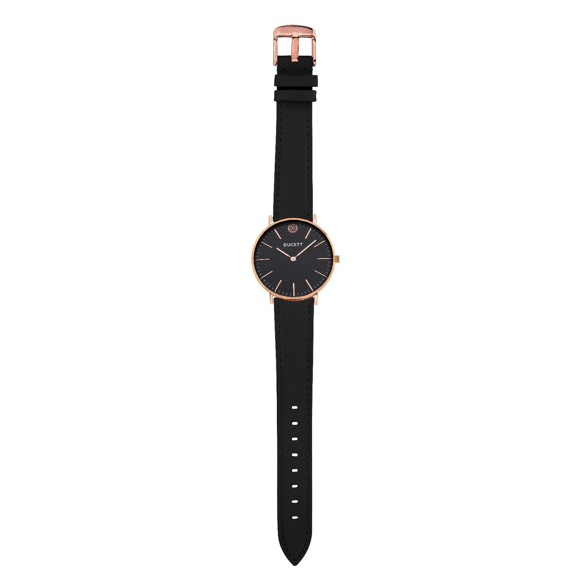 Black leather strap rosé gold