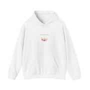 Soft, restorative hoodie designed for a self‑care Valentine: a clean, minimal chest print of muted floral tones with a short...