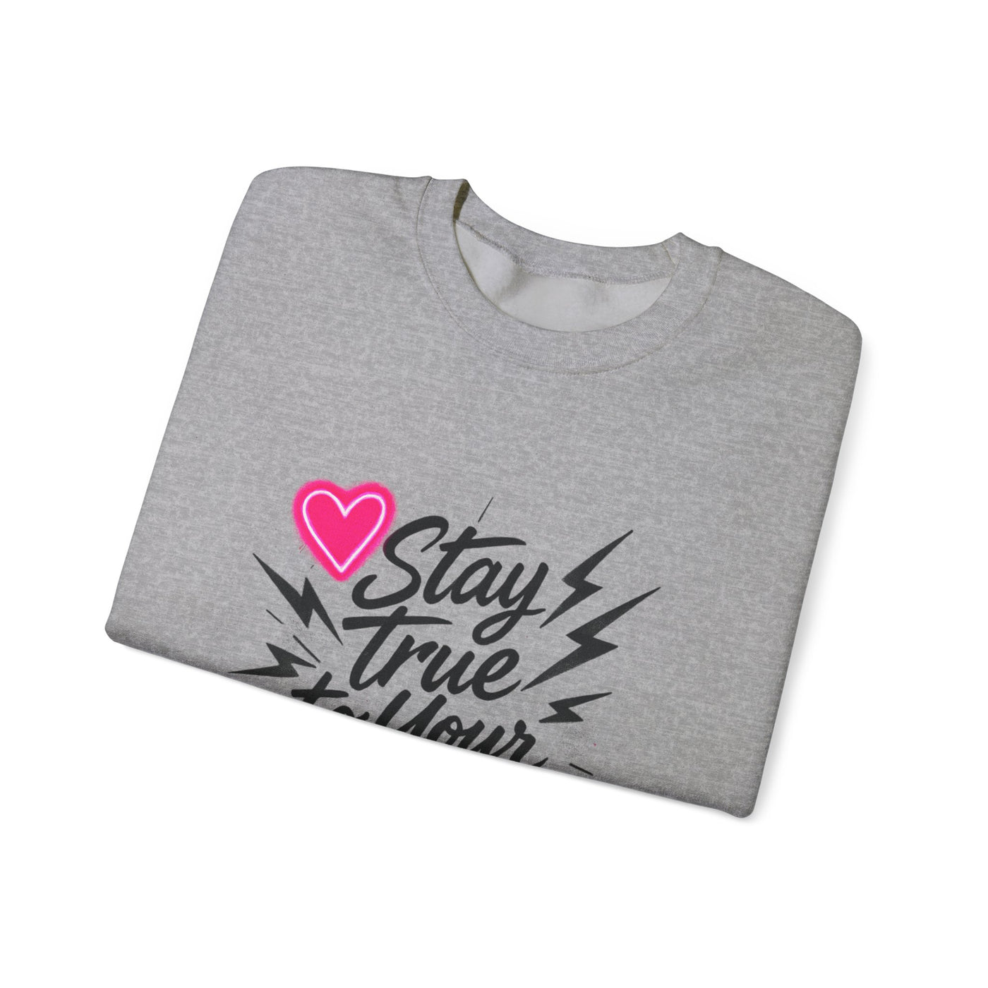 Crewneck Sweatshirt — "Stay True to Your Gloom" Pink Heart Graphic