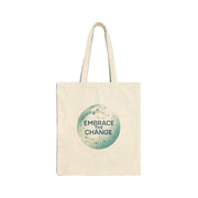 This sturdy cotton canvas tote carries more than just items — it carries intent. Handprinted with a soft, watercolor globe and the words “Embrace the Change,” it feels quiet and hopeful. The heavy 12 oz fabric holds its shape through busy markets, library runs, and commuter days. Flat corners keep the silhouette slim for layering under a coat or hanging on a hook. Reinforced self-fabric handles sit comfortably on the shoulder while you juggle a coffee and a stack of books. Choose natural or black to match your wardrobe; either way the sewn-in label and clean finish give it a lived-in, reliable look that ages well.