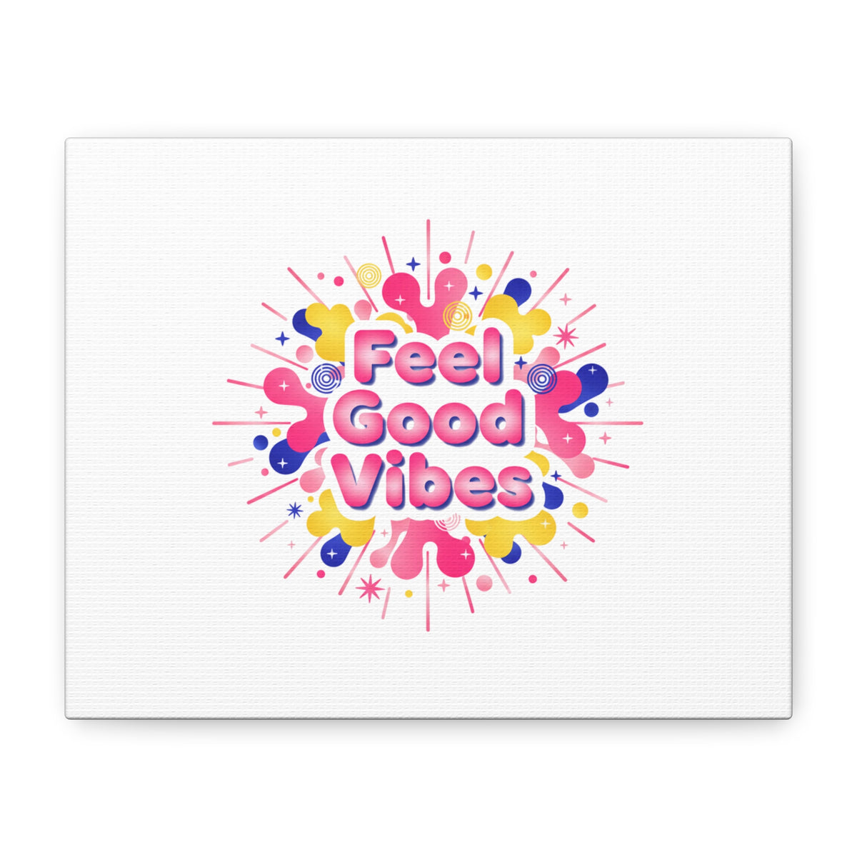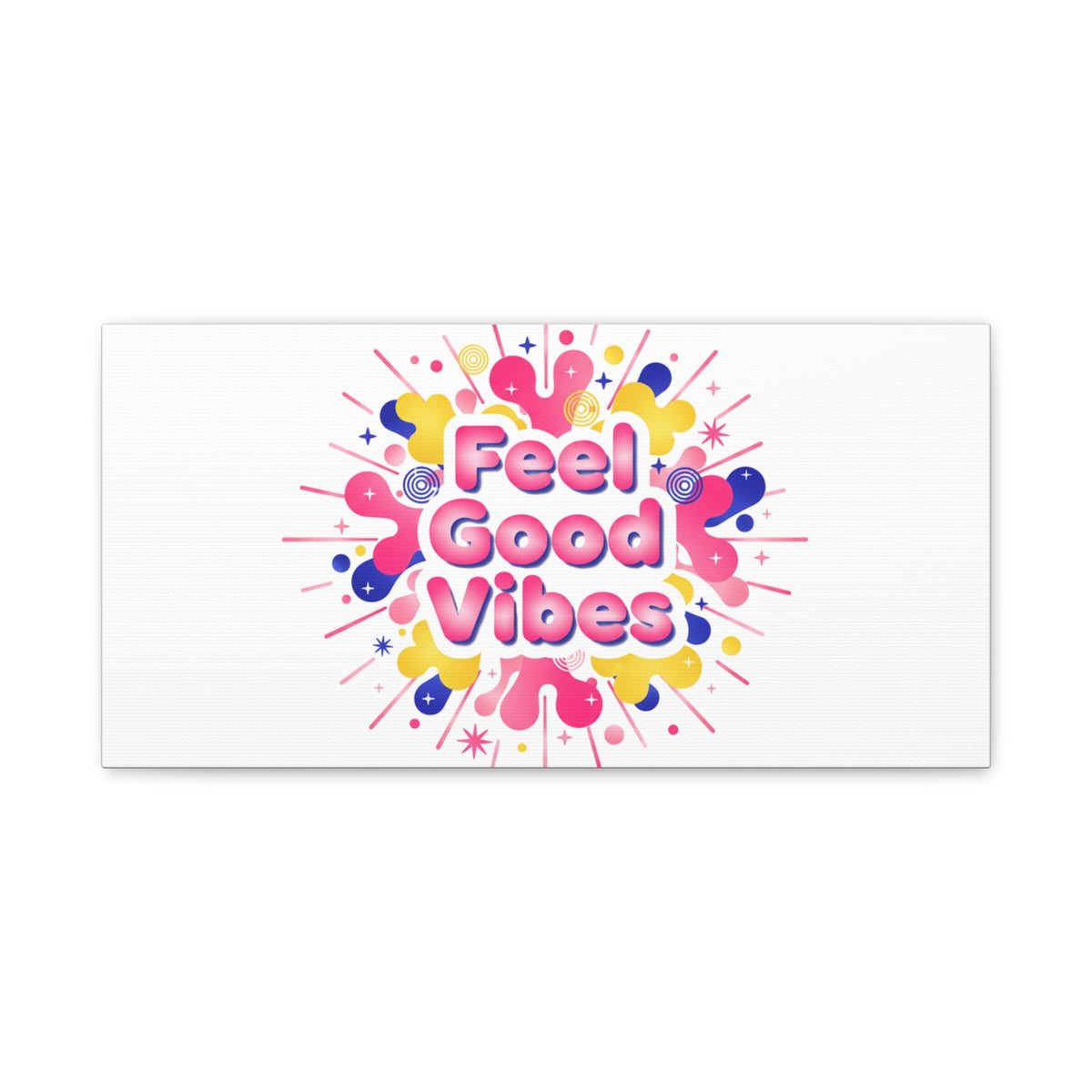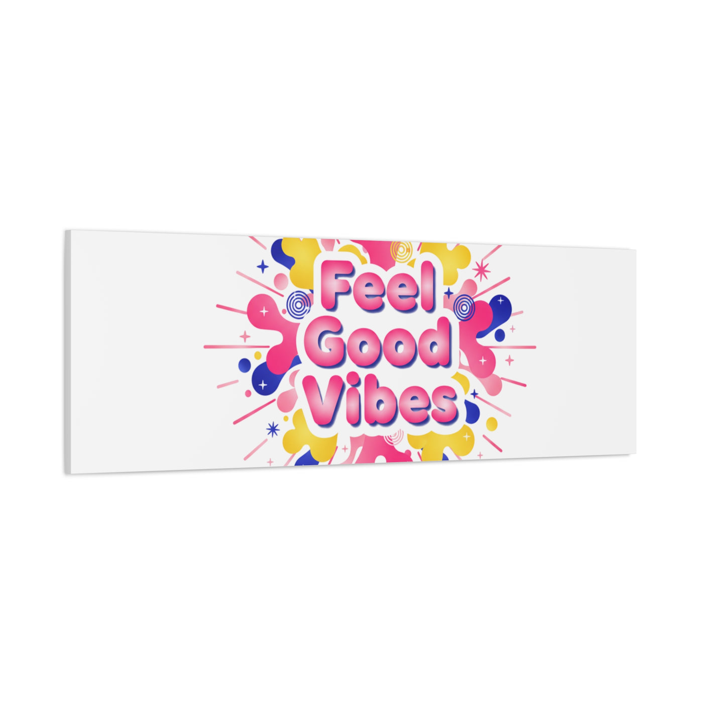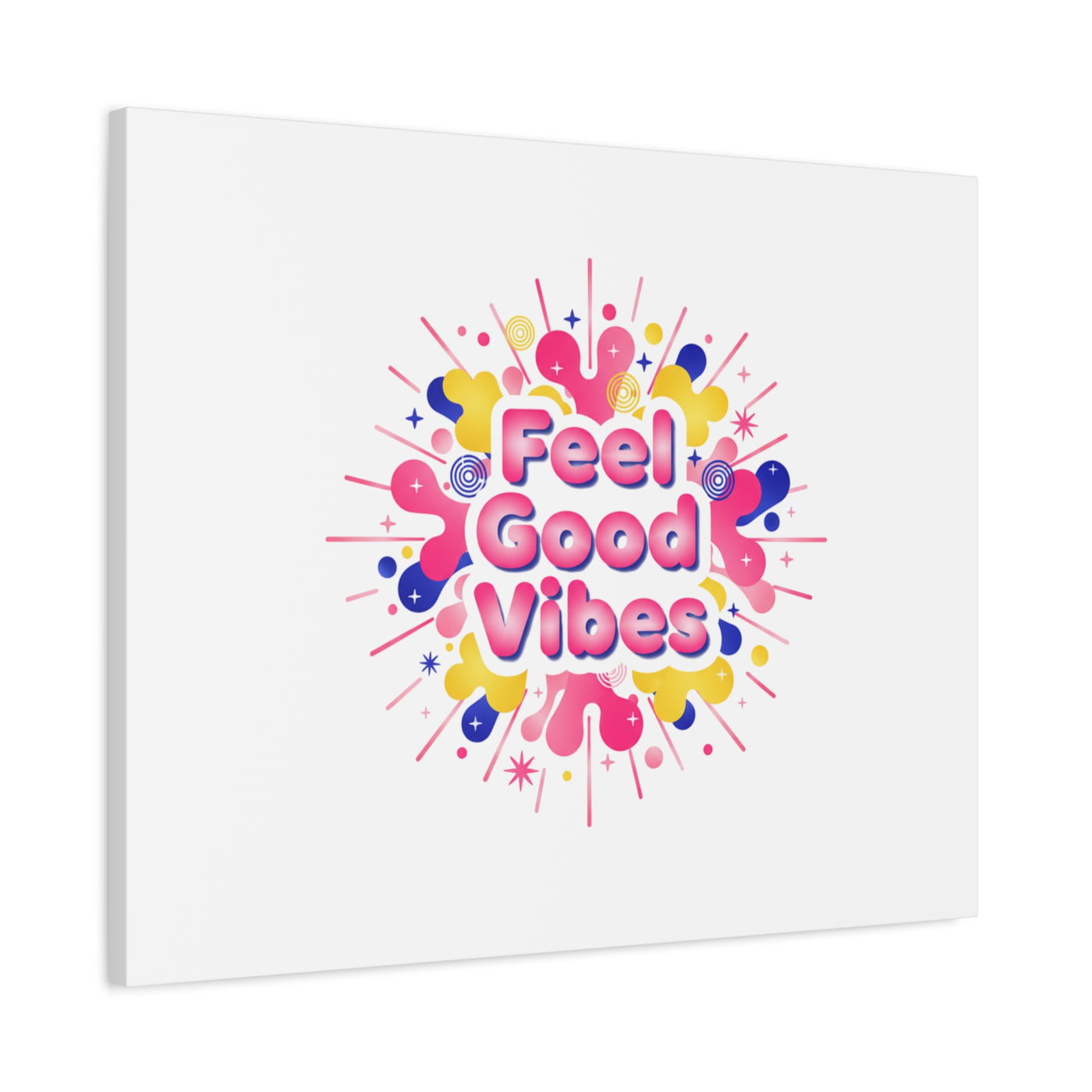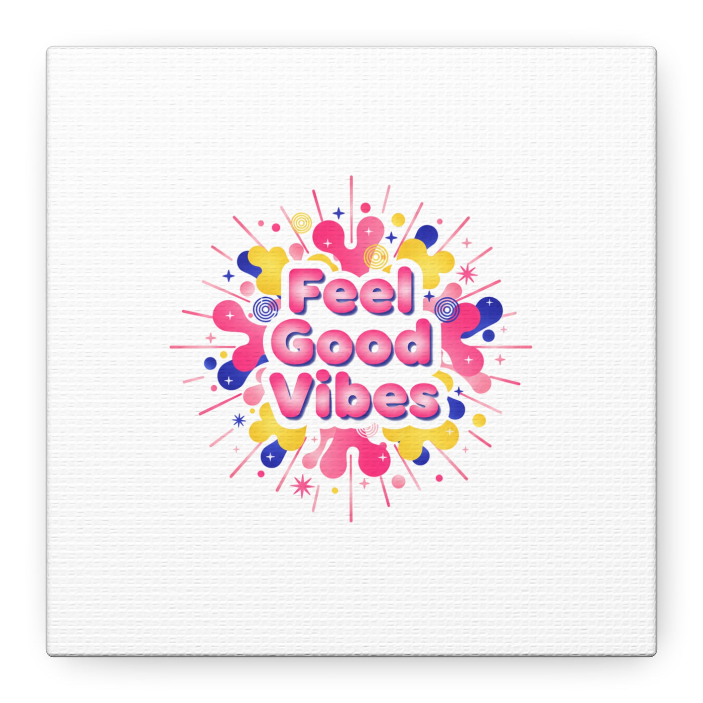 Bright, squishy neon canvas print that channels the Dopamine Decor mood with rounded, glossy lettering and playful 3D-like blobs in electric pinks, lemon yellow and cobalt. The design reads as a burst of sensory comfort — retro Y2K shapes and shiny gradients arranged around a short, upbeat phrase to lift a room’s energy. Sized and finished for wall display, it reads well in small or large formats for color-focused home and self-care corners.