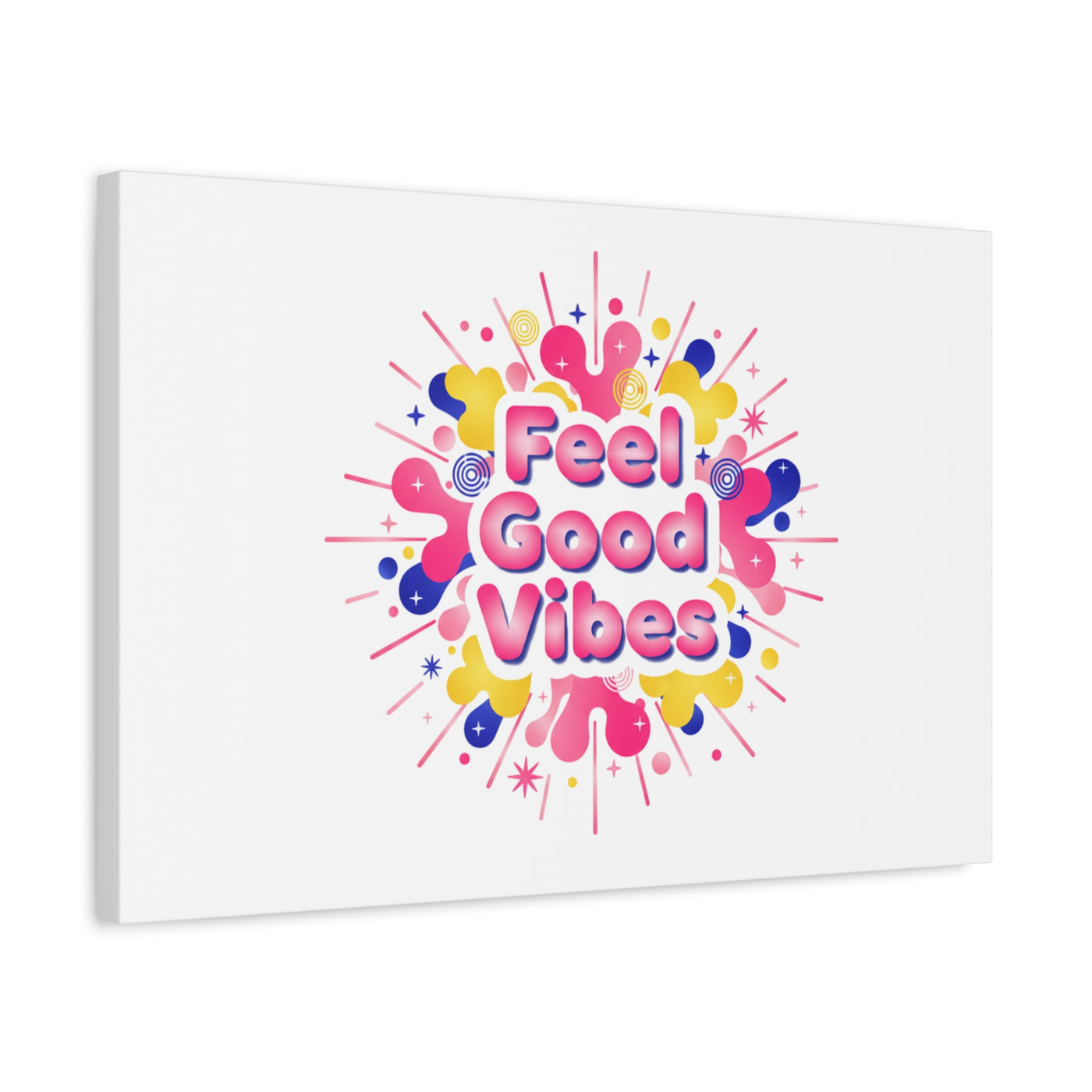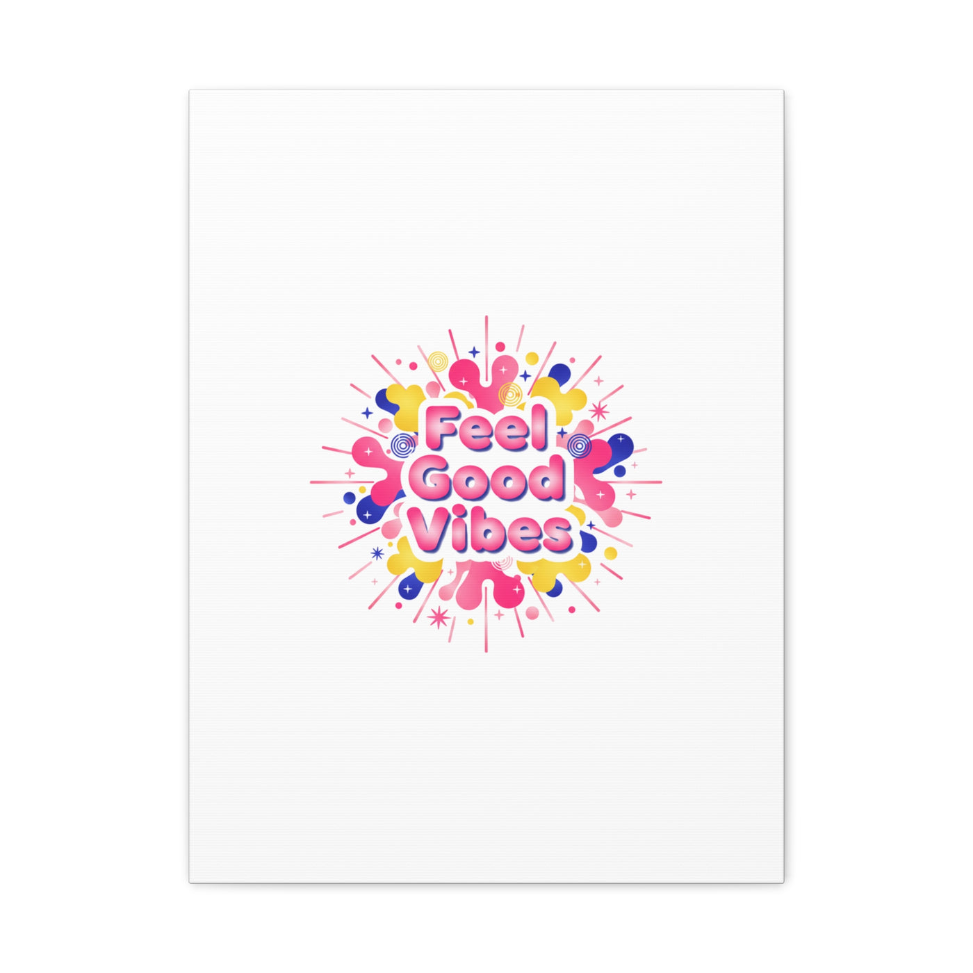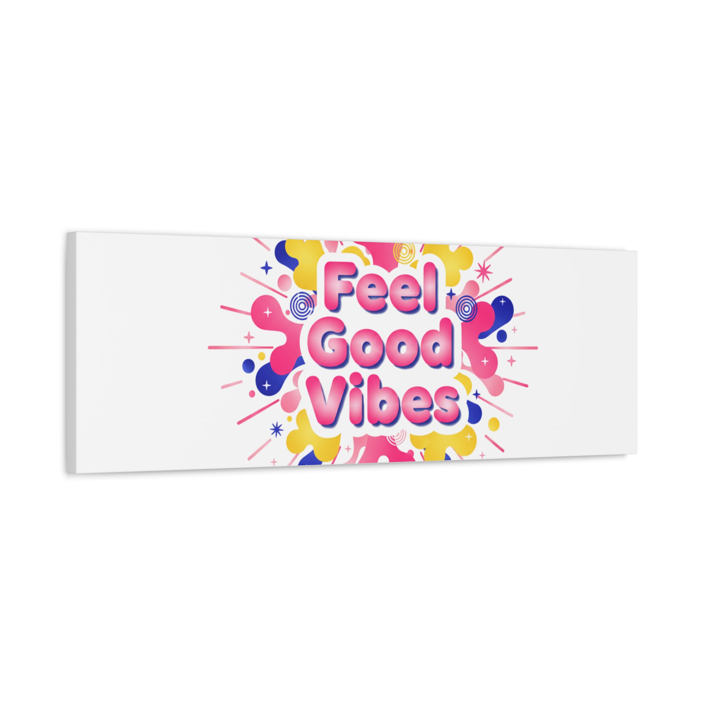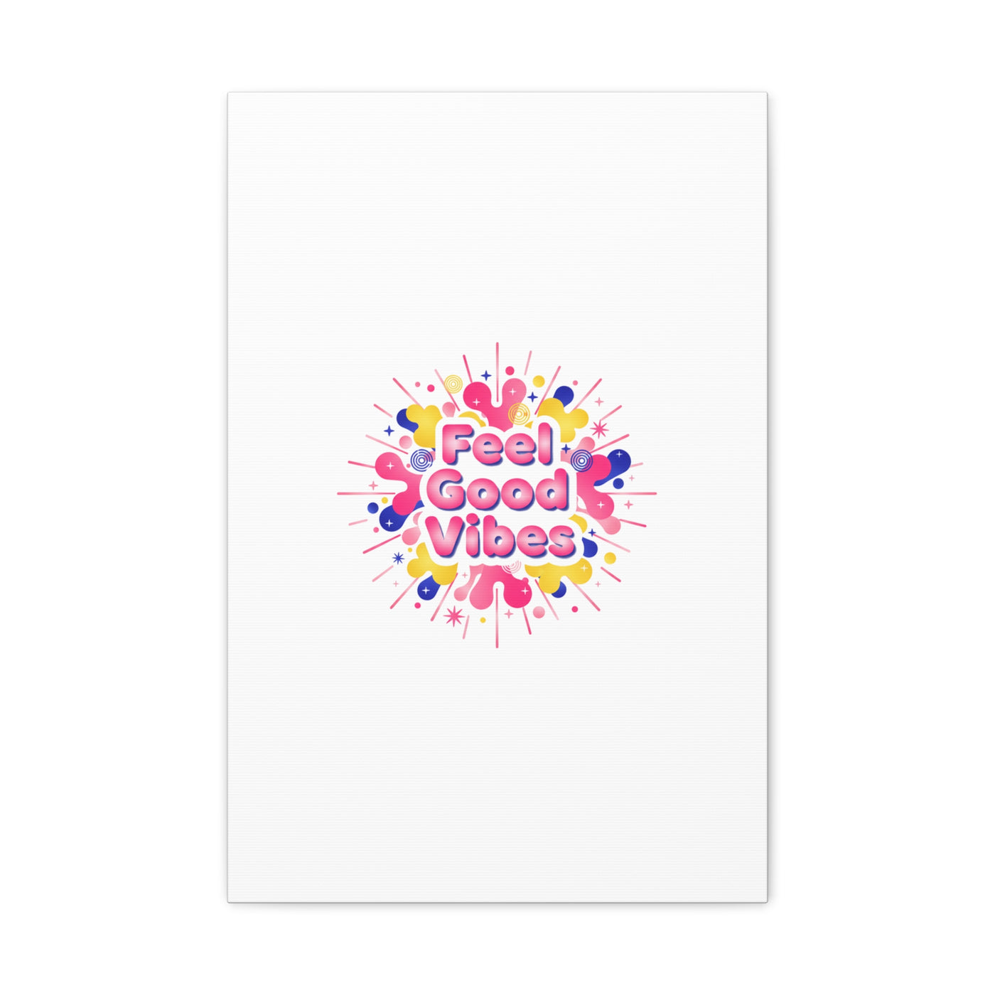Bright, squishy neon canvas print that channels the Dopamine Decor mood with rounded, glossy lettering and playful 3D-like blobs in electric pinks, lemon yellow and cobalt. The design reads as a burst of sensory comfort — retro Y2K shapes and shiny gradients arranged around a short, upbeat phrase to lift a room’s energy. Sized and finished for wall display, it reads well in small or large formats for color-focused home and self-care corners.