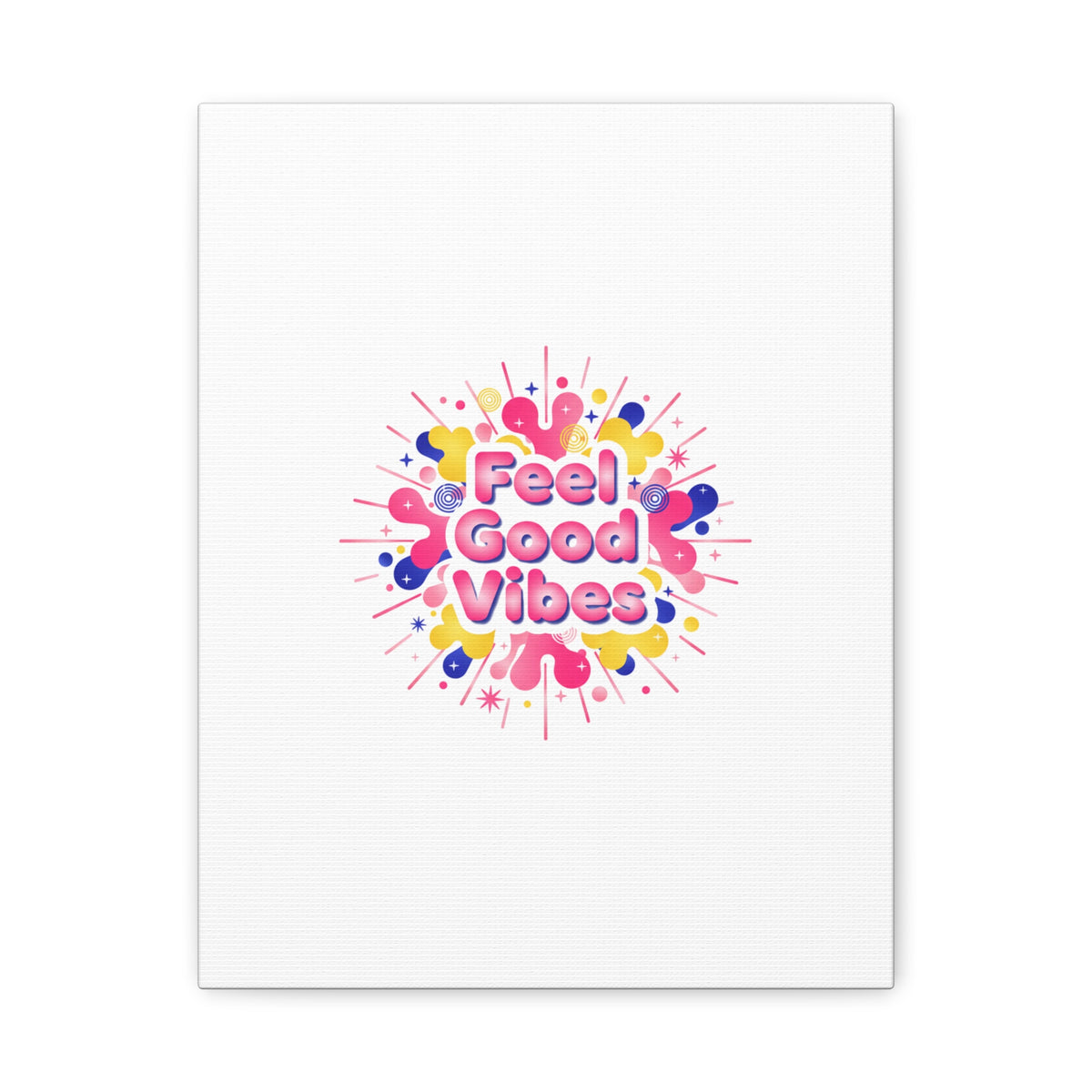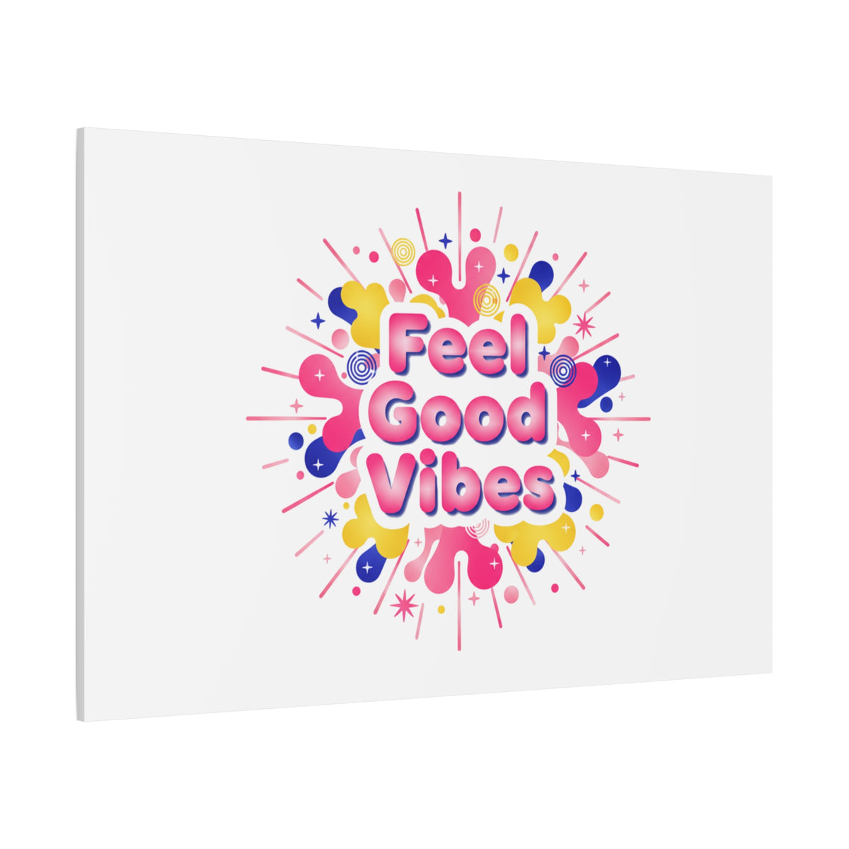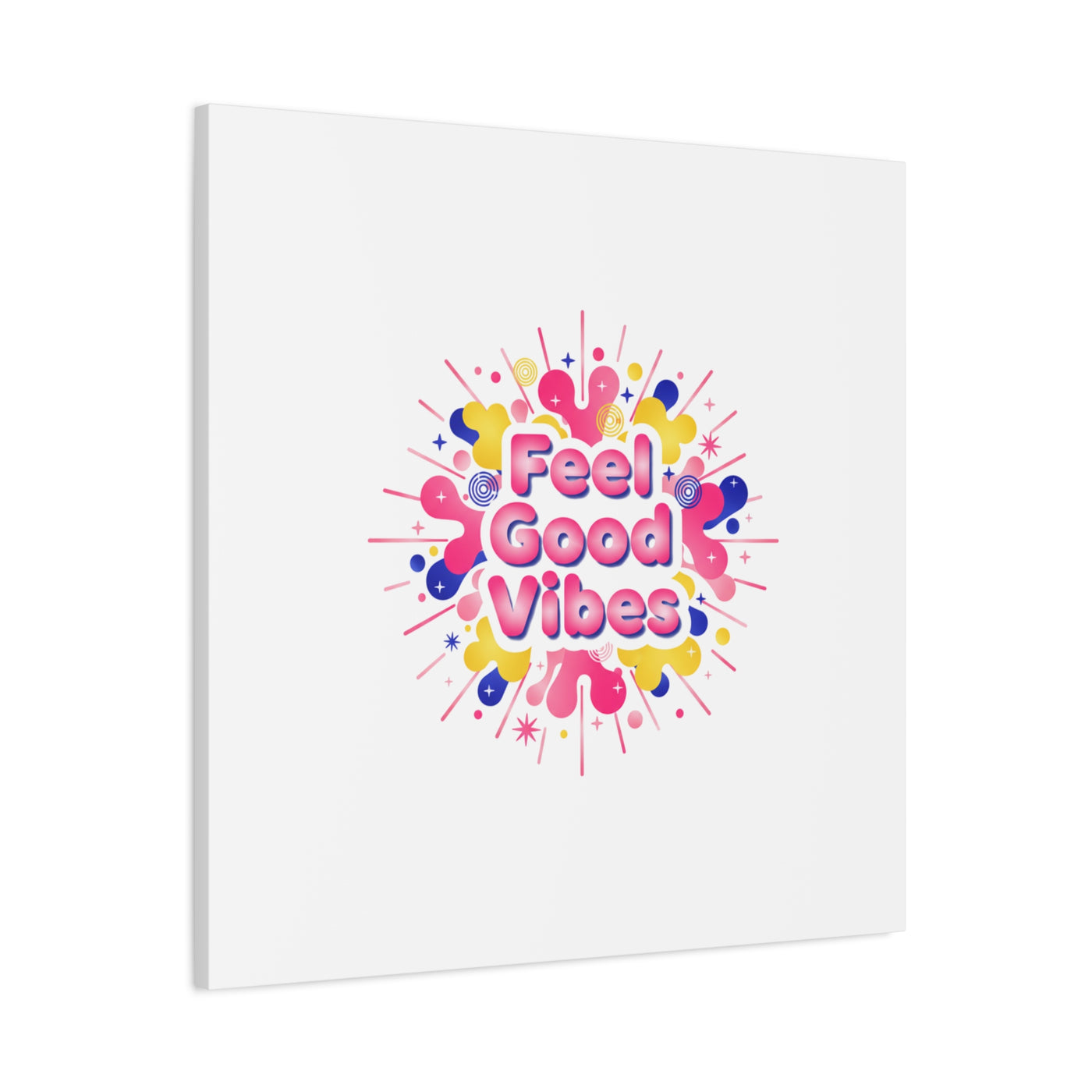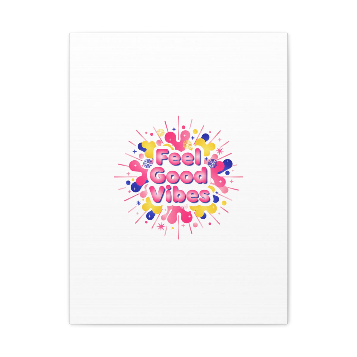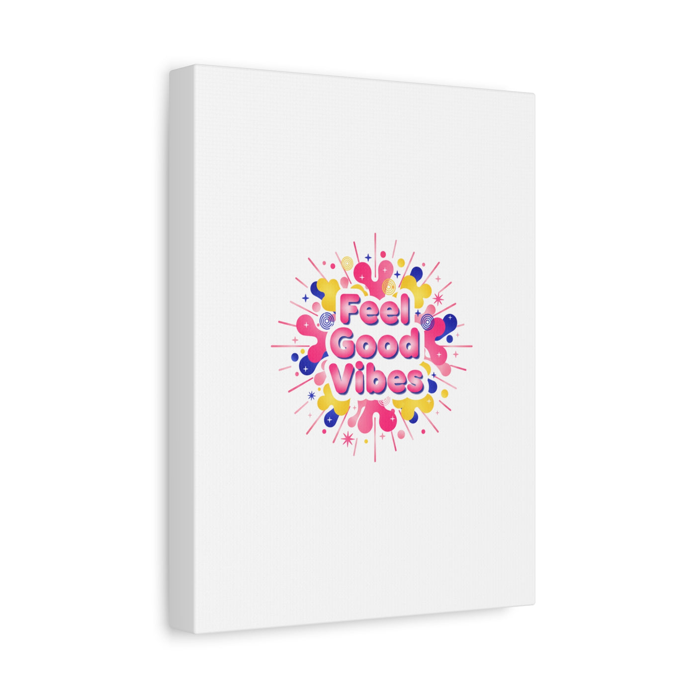 Bright, squishy neon canvas print that channels the Dopamine Decor mood with rounded, glossy lettering and playful 3D-like blobs in electric pinks, lemon yellow and cobalt. The design reads as a burst of sensory comfort — retro Y2K shapes and shiny gradients arranged around a short, upbeat phrase to lift a room’s energy. Sized and finished for wall display, it reads well in small or large formats for color-focused home and self-care corners.