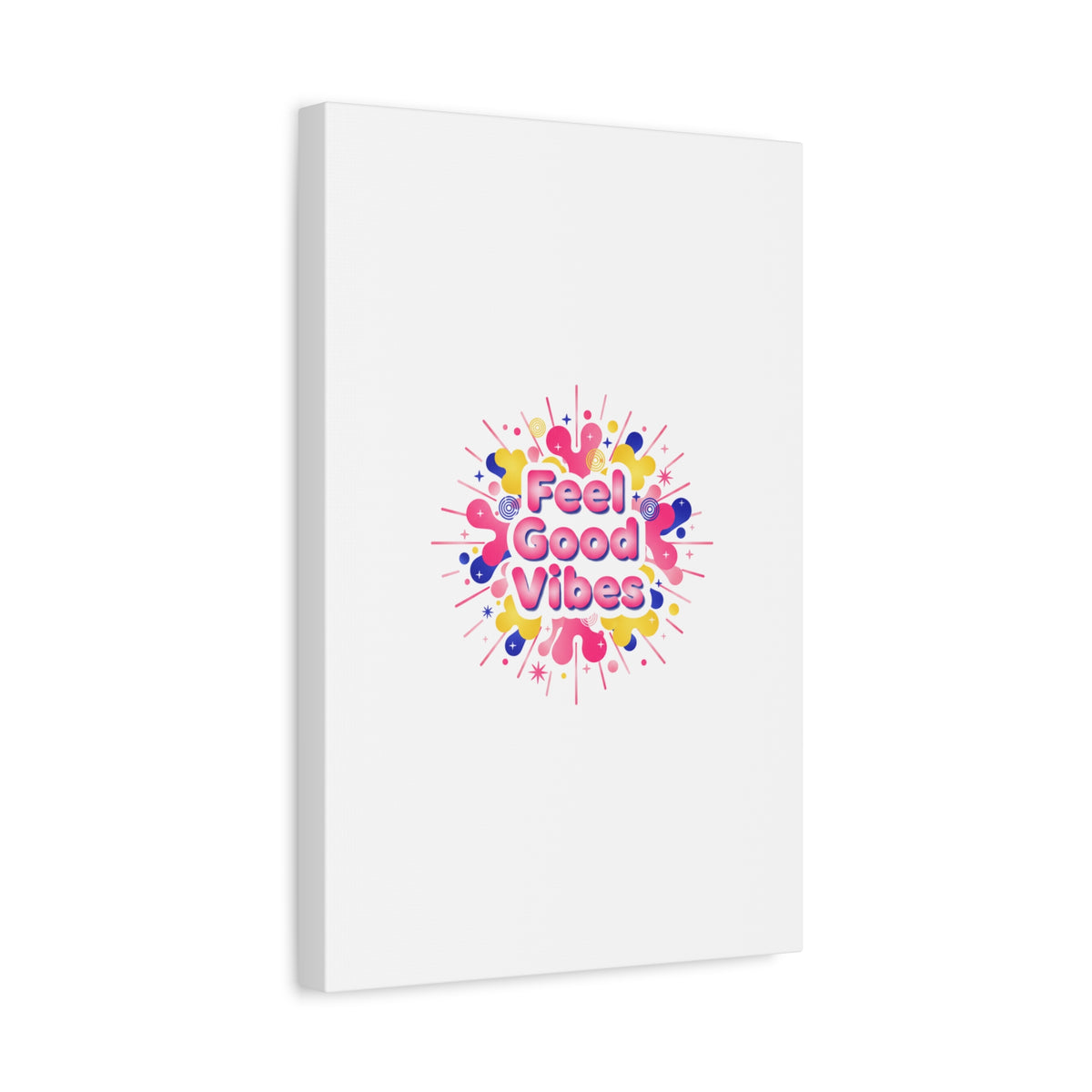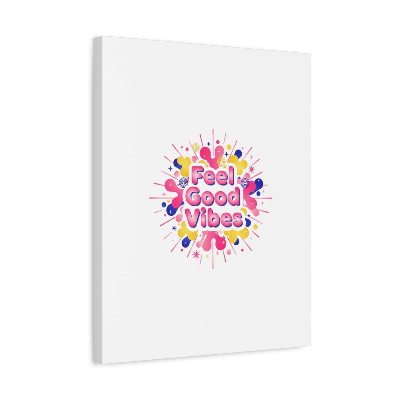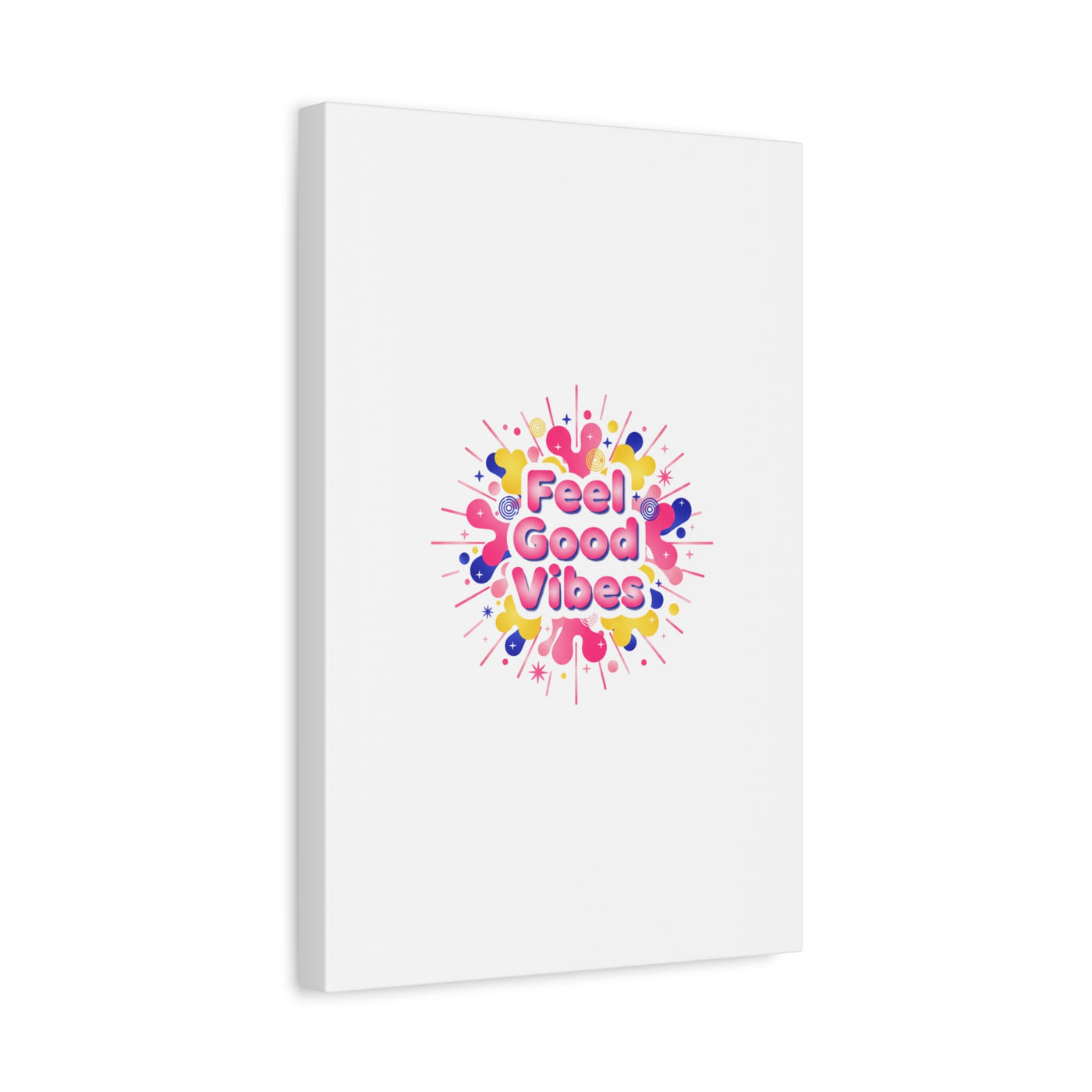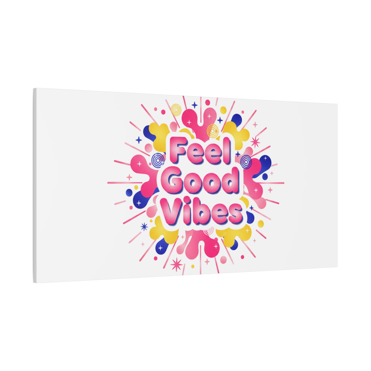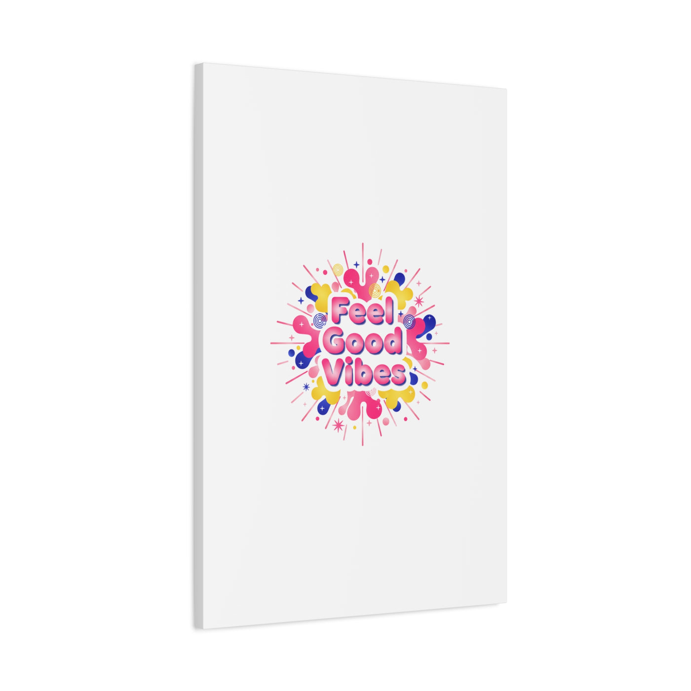 Bright, squishy neon canvas print that channels the Dopamine Decor mood with rounded, glossy lettering and playful 3D-like blobs in electric pinks, lemon yellow and cobalt. The design reads as a burst of sensory comfort — retro Y2K shapes and shiny gradients arranged around a short, upbeat phrase to lift a room’s energy. Sized and finished for wall display, it reads well in small or large formats for color-focused home and self-care corners.