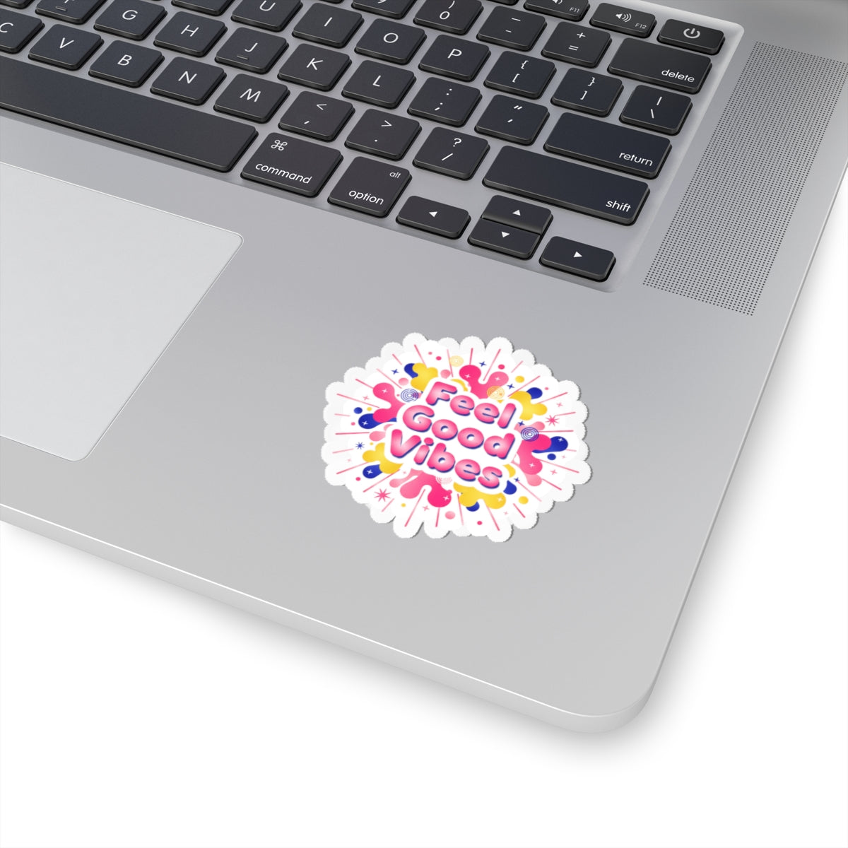 Feel Good Vibes Sticker | Dopamine Decor, Neon Gradient Squishy Art - 2" × 2" / White