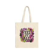 Feel It All Canvas Tote — Vibrant Music & Heart Graphic Cotton Bag