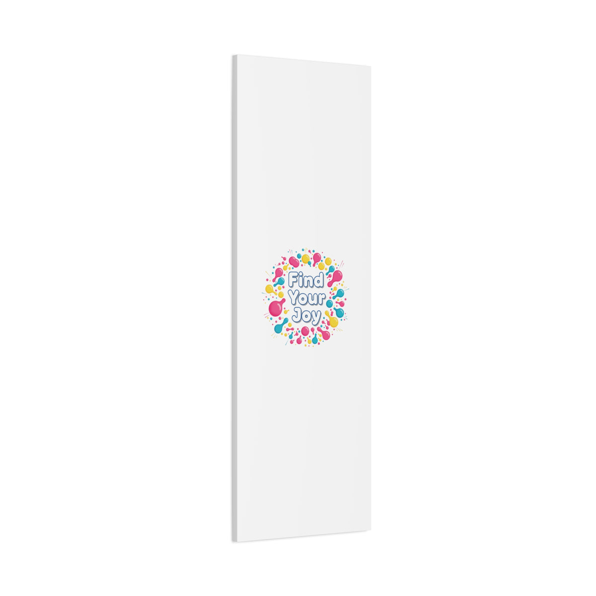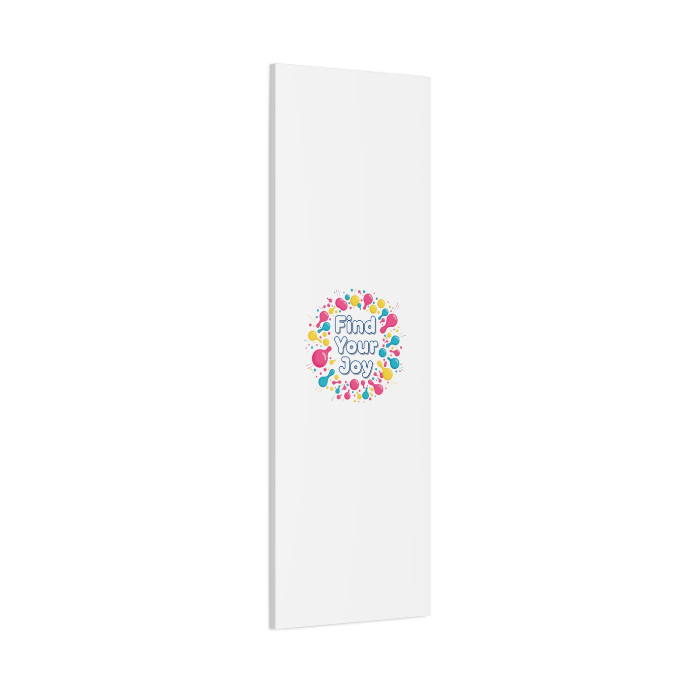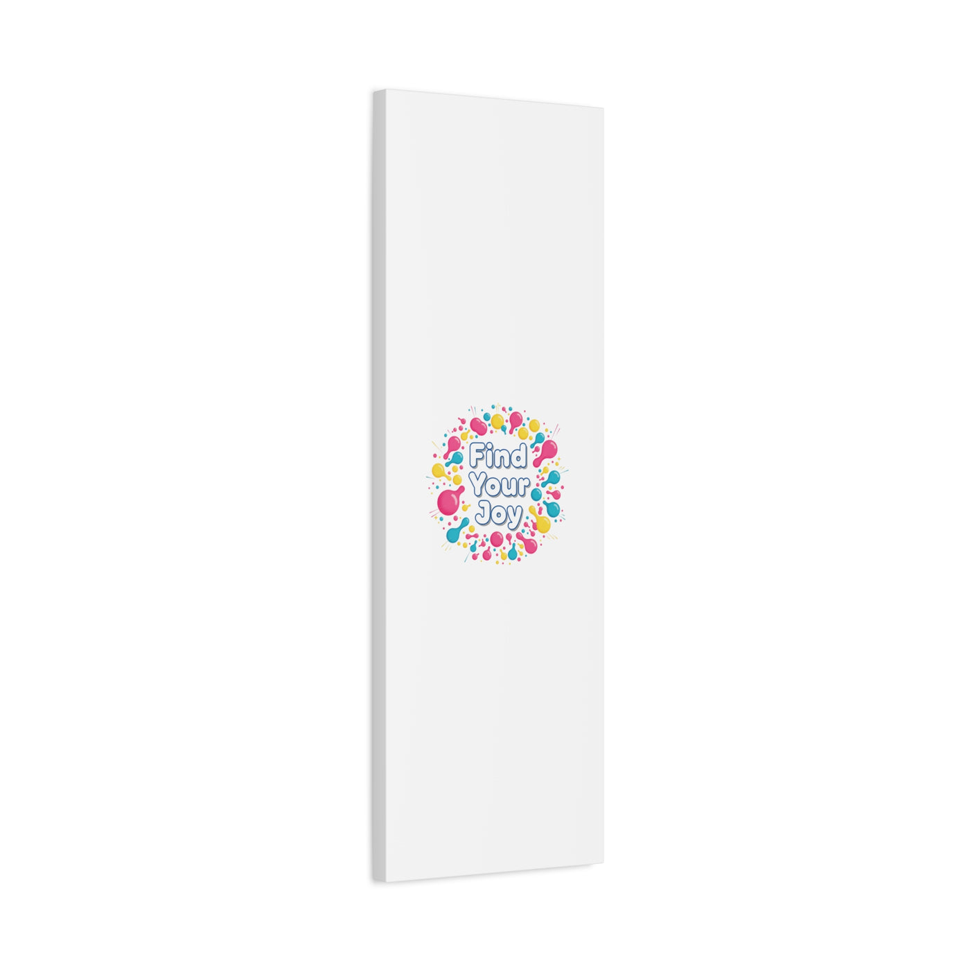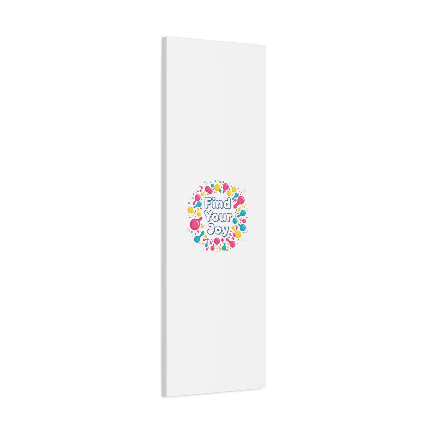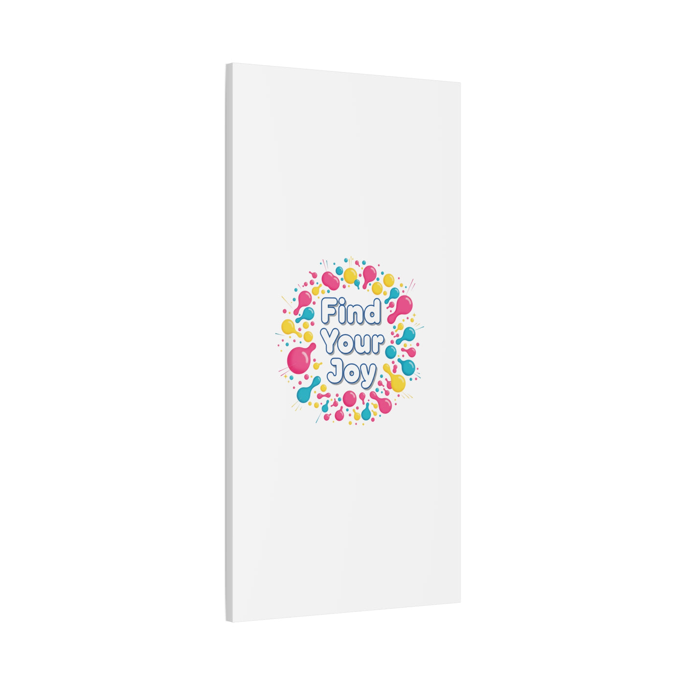 Find Your Joy matte stretched canvas featuring a neon-inspired squiggle wreath and playful rounded typography. Bright, high-saturation pinks, lemon yellow...