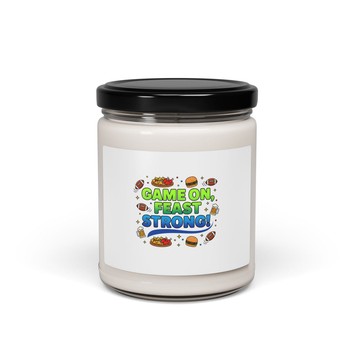 Game-day scented jar that pairs playful host humor with cozy, snack-forward energy. The label art uses bold, high-contrast sporty type and food icons to read like a cheeky party badge — a lighthearted nod to Super Bowl party and football season vibes. Choose a warm Cinnamon Vanilla, fresh Clean Cotton, fruity Apple Harvest, or any of 12 aromatic options to set the room’s mood while the label announces the host’s snack-master persona.