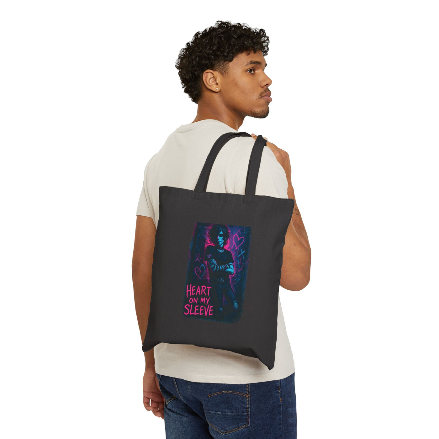 Carry your essentials with intention. This heavy-weight cotton canvas tote feels substantial in hand and wears like a quiet statement — sturdy straps, squared corners, and a sewn-in label that quietly nod to quality. The artwork sits crisp against the natural canvas, a moody blend of deep blues and neon pinks with the phrase “Heart on My Sleeve” that reads like a personal anthem. Use it for market runs, sketches at a café, or as the go-to bag for late-night adventures. It absorbs the rough edges of daily life and keeps your things safe, while the design adds a flash of personality that hints at someone who’s thoughtful, bold, and a little tender.