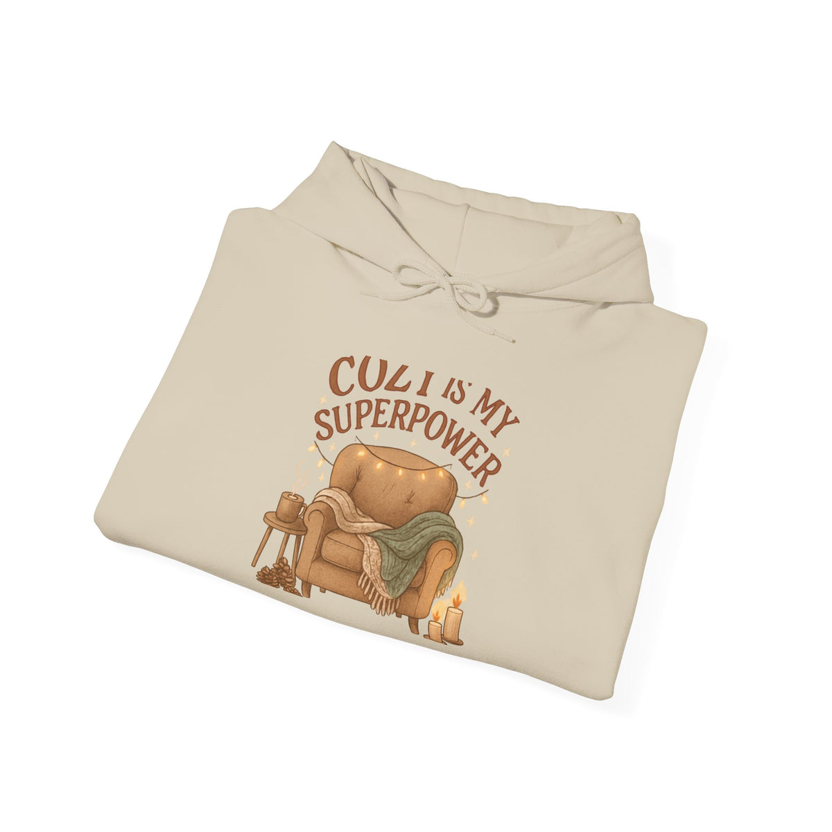 Wrap yourself in a soft, worn-in hug that celebrates the calm power of rest. This cozy hoodie features a warm illustration of a content figure curled up in an armchair with the playful line “Coz is My Superpower” above — a quiet nod to those who recharge through slow afternoons, hot drinks, and candlelight. It feels roomy in all the right places: a double-lined, color-matched hood tucks you in when a draft comes, and the kangaroo pocket keeps hands and small essentials tucked close. The tubular knit and tear-away label make for smooth, scratch-free wear, while sturdy 50/50 fabric holds printed artwork beautifully and stands up to repeated wear. Wear it for reading marathons, low-key gatherings, or evenings by the fire — it settles you into the small rituals that matter.