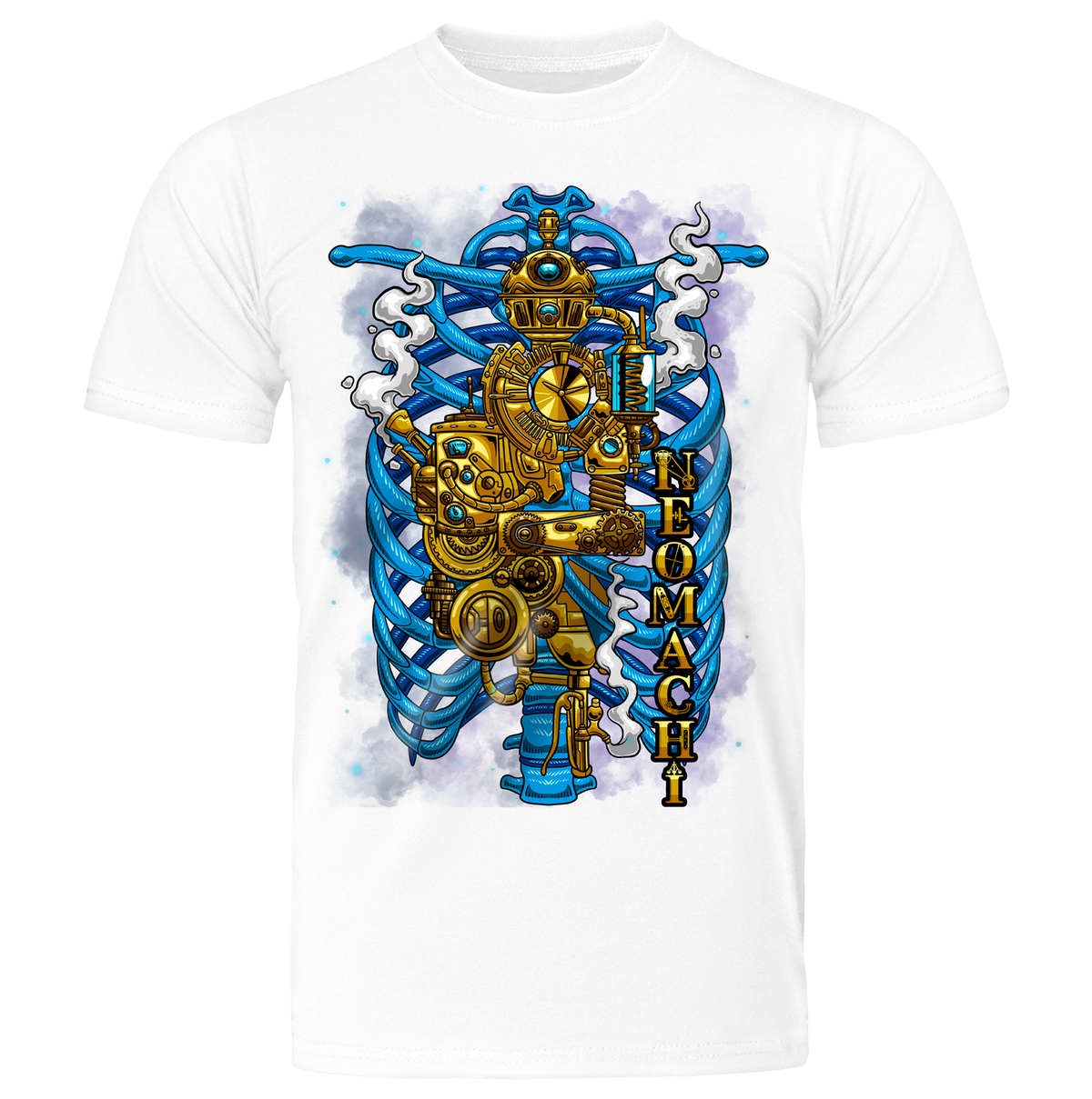 It inspired us to create a design with similar vibes. Since we already have a cyberpunk cybernetic heart, we thought it would be cool to make a steampunk version depicting the inner workings of a person's torso. This design is also available in a sweater.