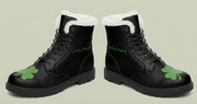 These boots bring winter evenings to life. Slip into the plush fleece lining and feel the chill melt away as you step onto the textured PVC outsole — solid underfoot whether you’re navigating slick city sidewalks or muddy trail shortcuts. The microfiber exterior looks and wears like leather while staying vegan and eco-conscious, so you can choose warmth without compromising values. High-definition printing on the microfiber keeps any design crisp and vibrant, and the thoughtfully layered construction keeps feet sheltered, supported, and quietly cozy. Sized and shaped for everyday movement, they pair with worn denim, thermal socks, and a slow morning coffee ritual or a spontaneous late-night walk under streetlights.